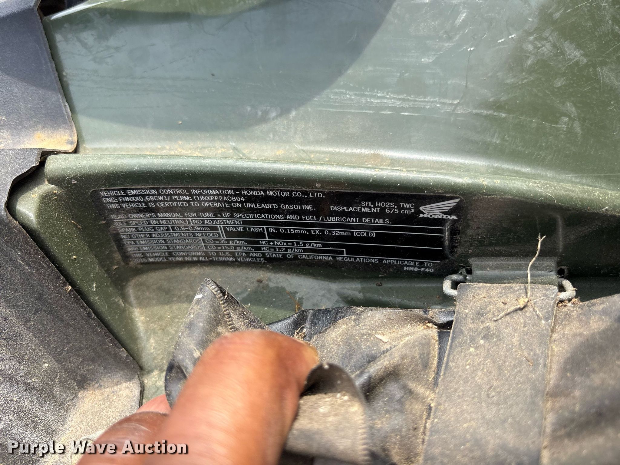 Purple Wave is selling a used ATV in Texas. This item is a 2015 Honda TRX680FA ATV with the following: Miles: 175 on odometer, Hours: 85 on meter, VIN: 1HFTE3302F4000455