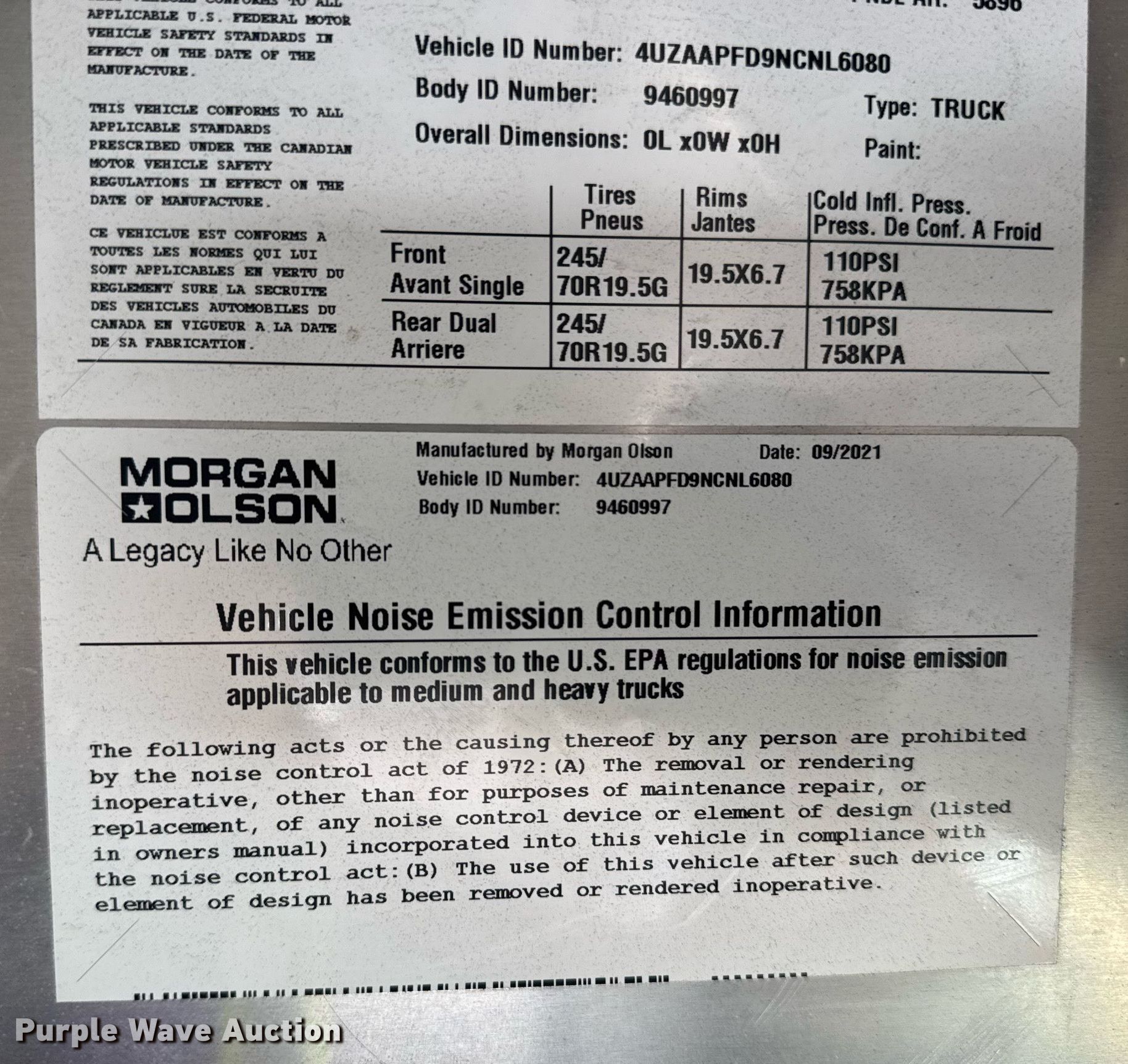 - VIN: 4UZAAPFD9NCNL6080