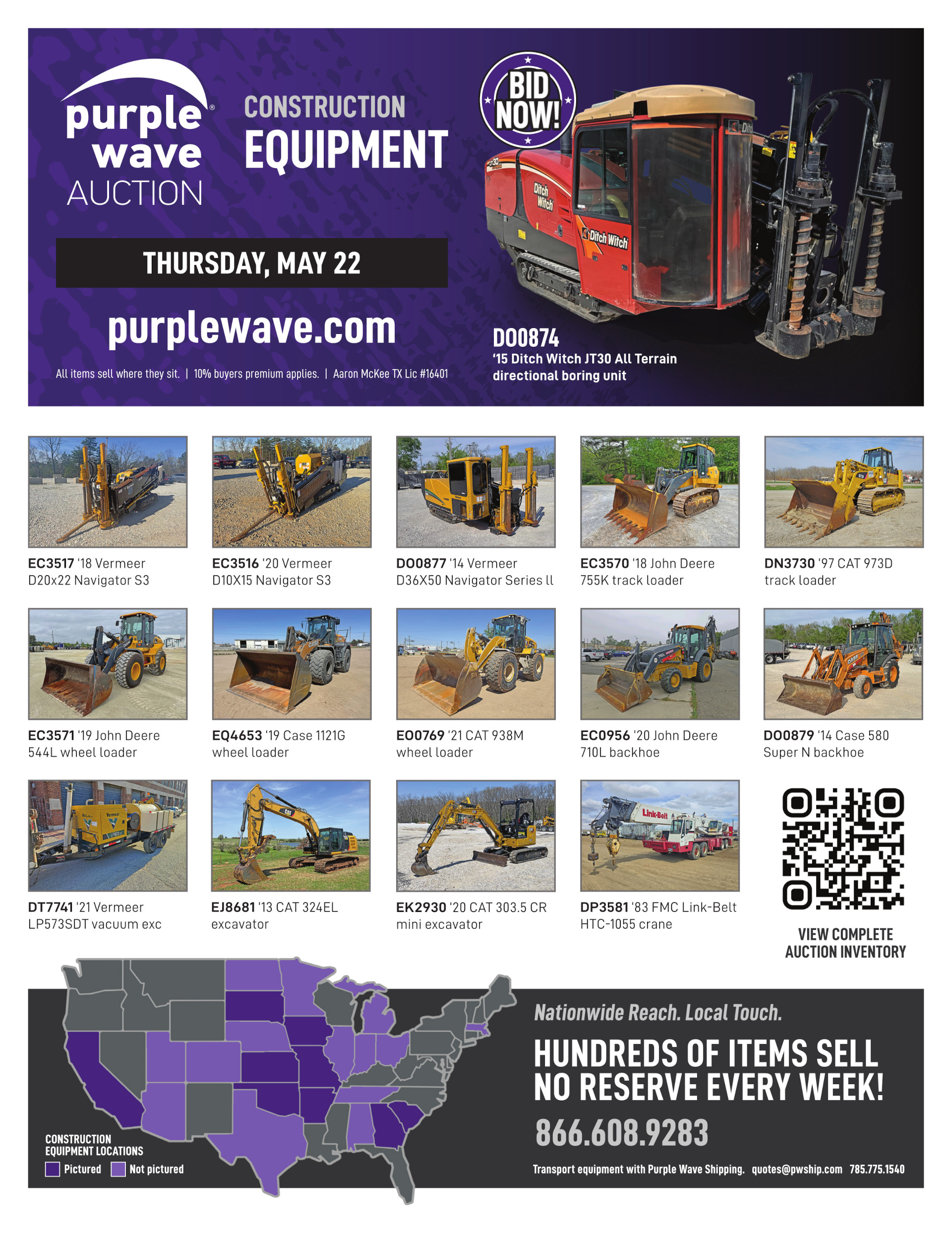 This auction is conducted by Purple Wave, Inc., whose home office is 825 Levee Drive, Manhattan, Kansas. Aaron McKee, Texas auctioneer license # 16401, operates Purple Wave, Inc. Complaints against us may be directed to the Texas Department of Licensing and Regulation, P.O. Box 12157, Austin, Texas 78711, (512) 463-6599. For additional required information, see the attached document.