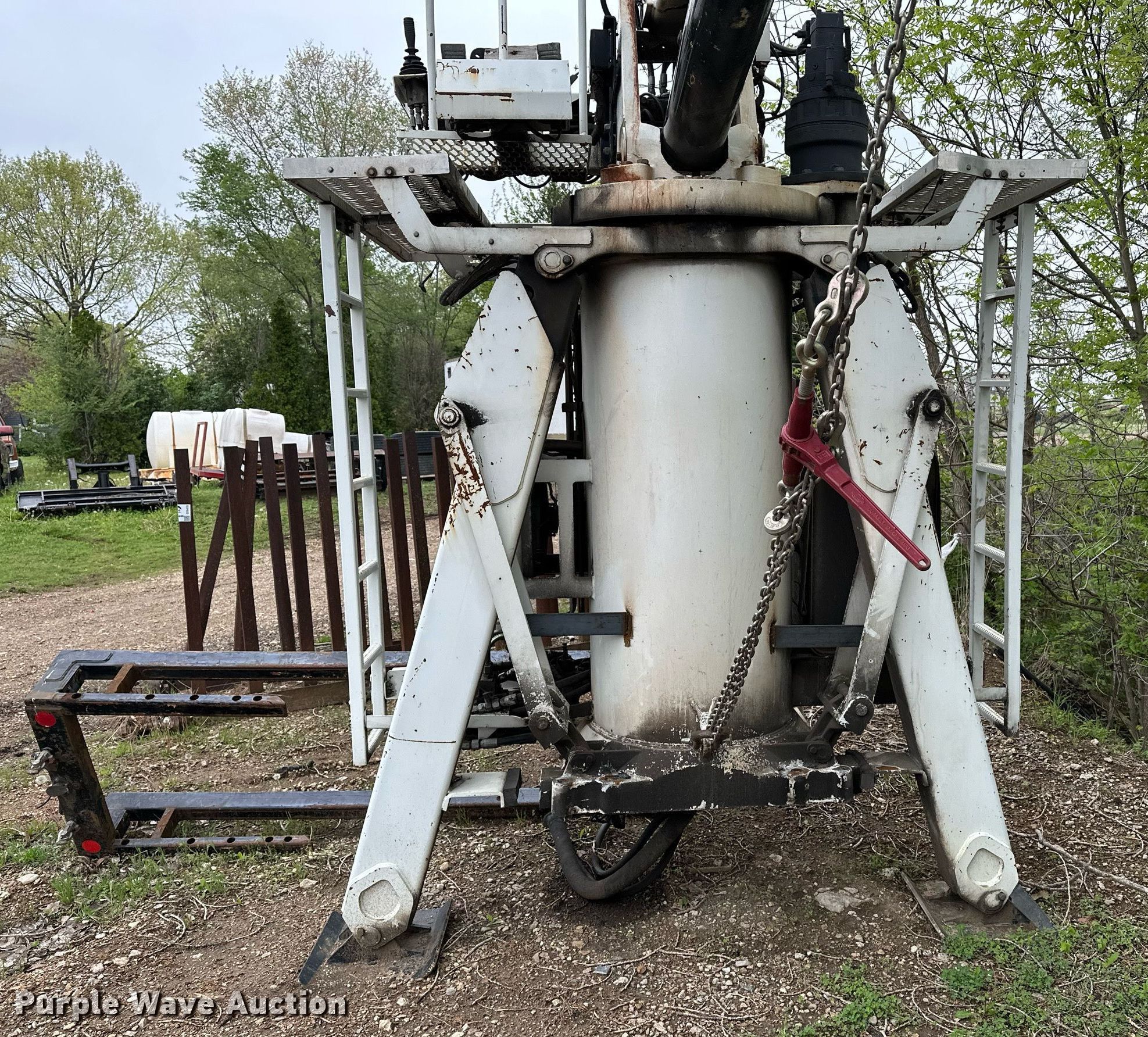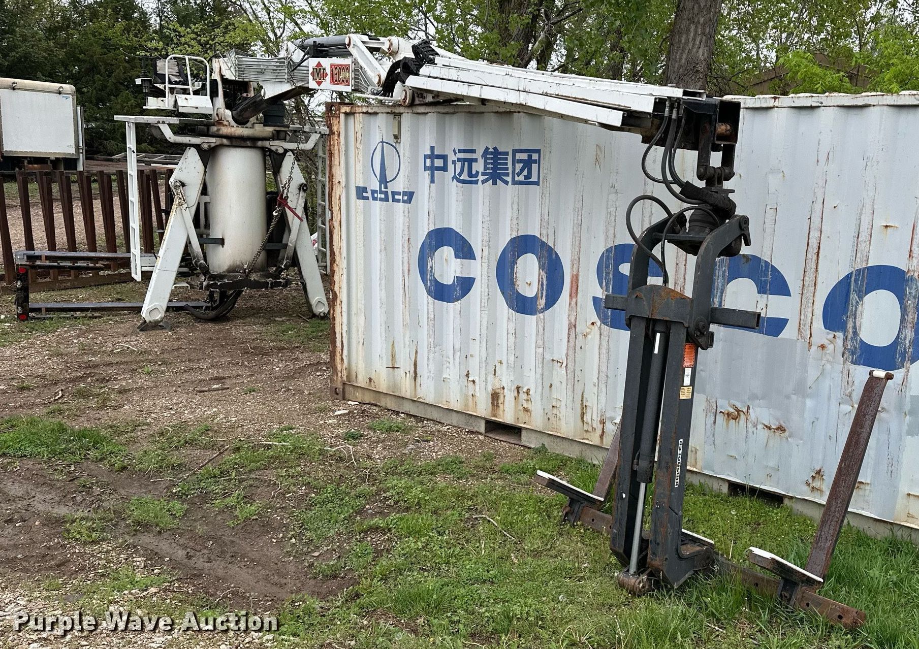 IMT 16000 Series III truck mounted crane. Serial: 16000S3141065. Features Telescopic, Maximum boom length: 42' Sections: 3, Maximum lift capacity: 5,825 lbs, Maximum lift height: 54', Stabilizers: 2, Forks 2014 Kinshofer KM461, Serial AL0045, Capacity 6,000 lbs, Fork length 44". Notes Chain, boomers, and Conex box not included. Reed Company, LLC. Wamego , KS 66547