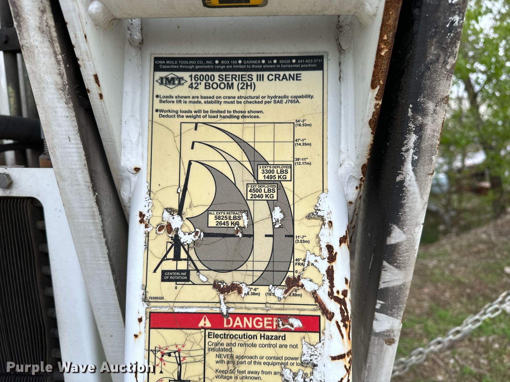 IMT 16000 Series III truck mounted crane has sold in Wamego , Kansas for $632.50. Item DF8480 sold on May 22nd, 2025.