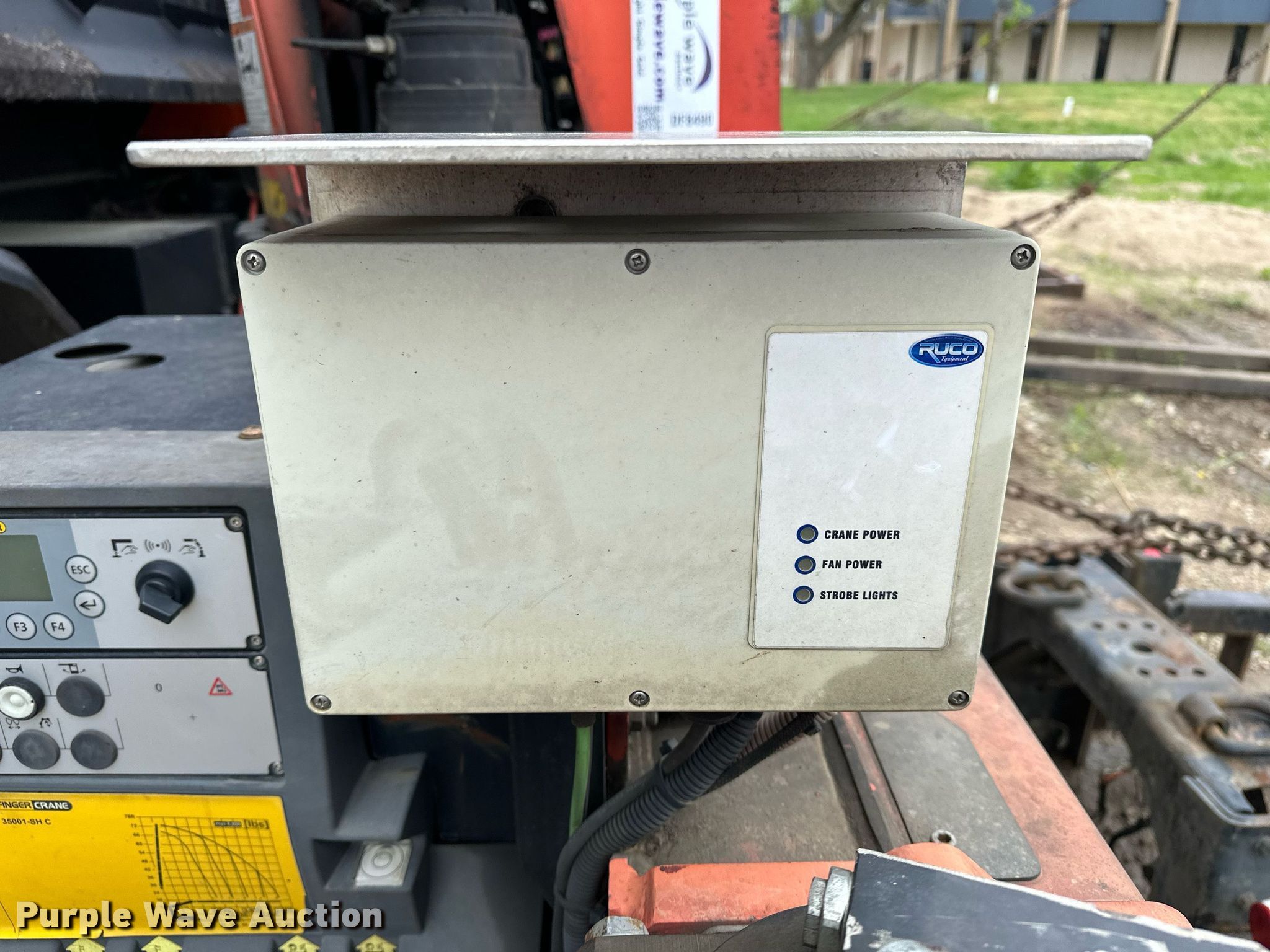 2014 Palfinger PW35001-SH truck mounted crane. Serial: 100182709. Features Telescopic, Sections: 5, Maximum lift capacity: 8,800 lbs, Maximum lift height: 72', Stabilizers: 2, Boom controls Ground, Forks 2014 Kinshofer KM461, Serial: BL00710, Capacity: 6,000 lbs. Notes Chains and boomers not included. Reed Company, LLC. Wamego , KS 66547