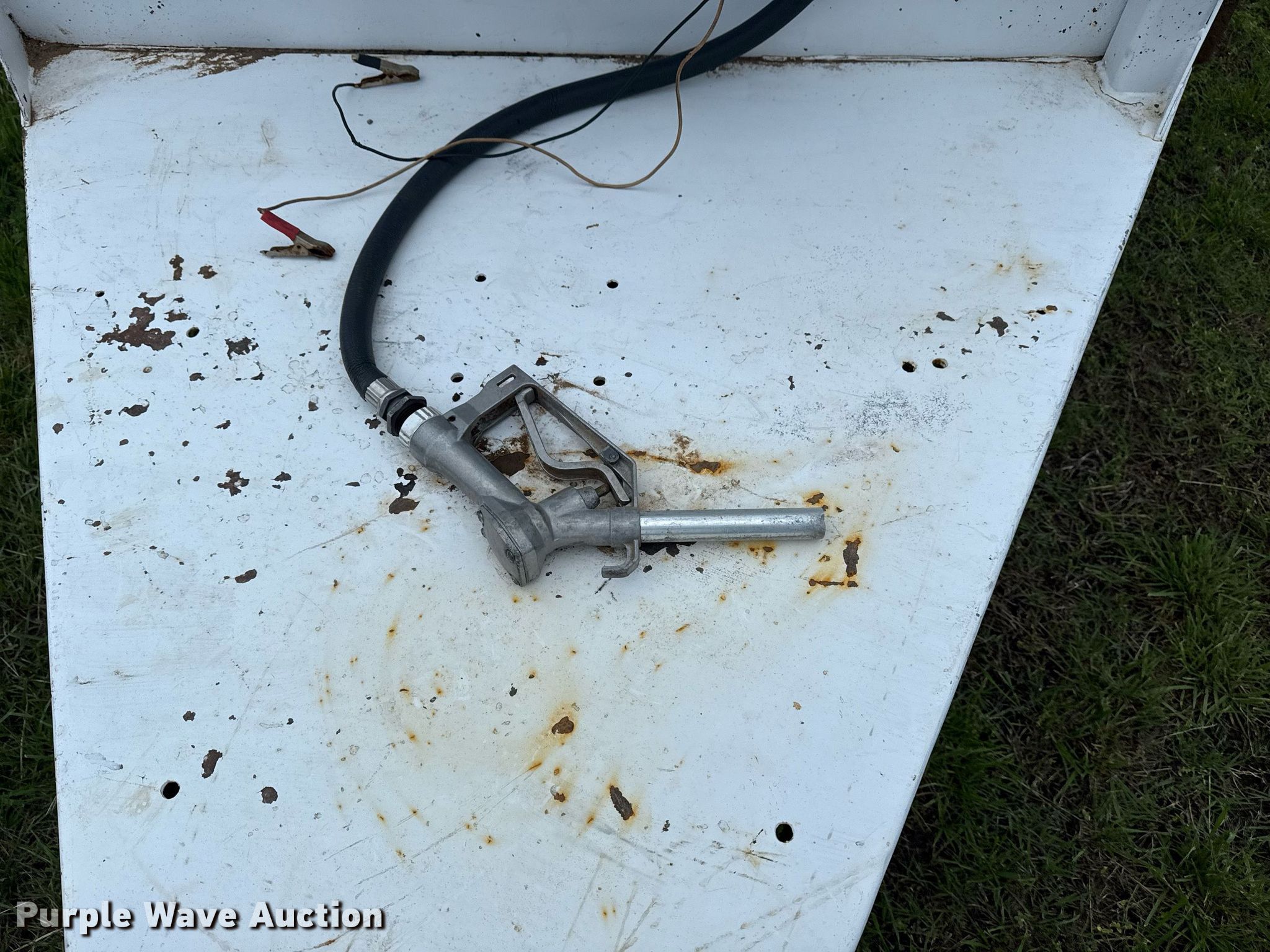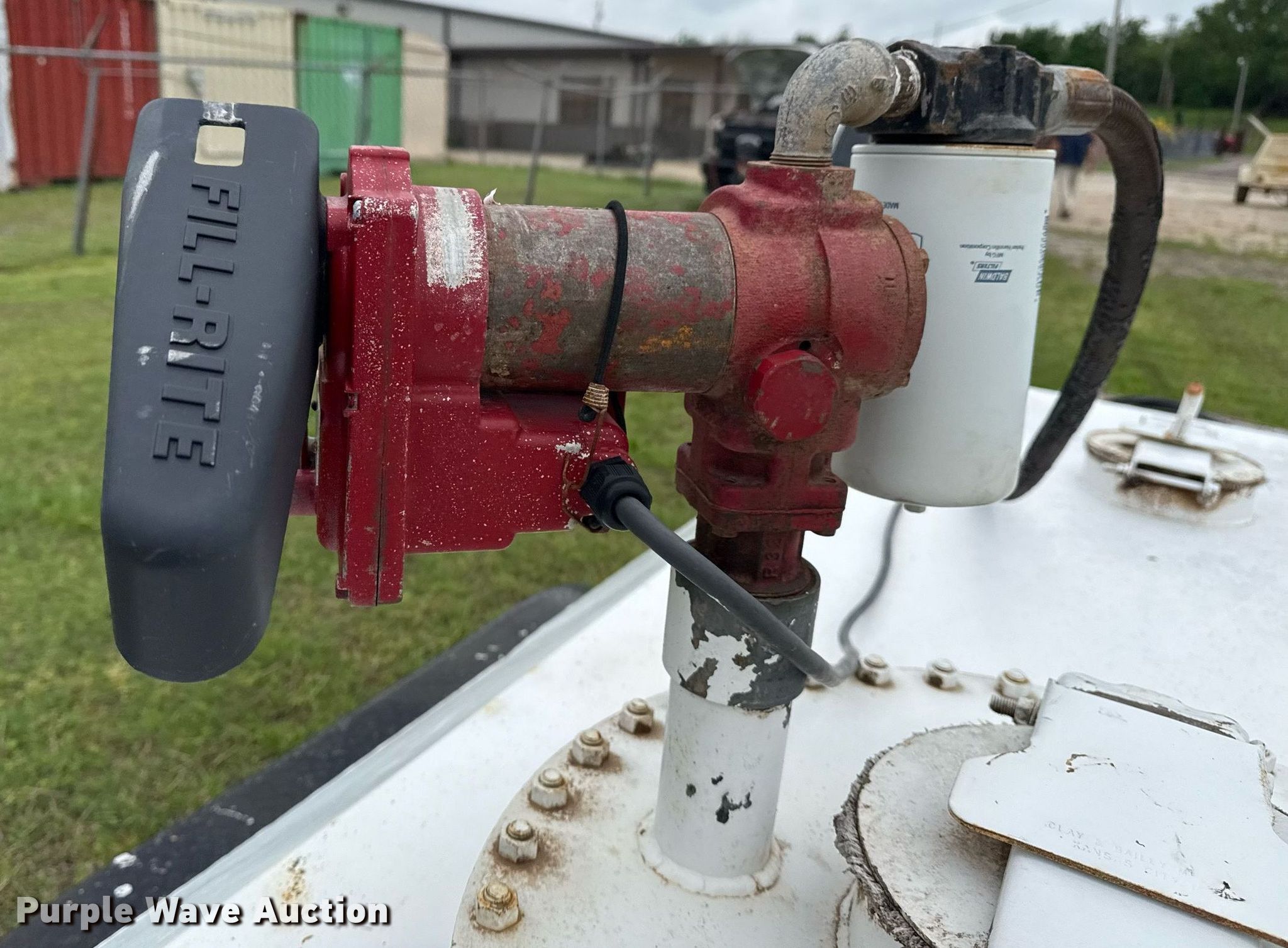 Shop built fuel trailer. Dimensions. Overall: 13' L x 71" W, Deck: 8' L x 53" W. Features Fuel tank 8� L x 53� W x 28" H, Pump Fill-Rite, GPM: 15, Volts: 12, Hose, Nozzle. Chassis Ball hitch: 2 5/16", Landing gear: Single, Suspension: Spring, Axles: Tandem. Tires Steel wheels, Size: ST205/75R15. Transfer of ownership documentation will be a bill of sale. Flint Equipment LLC. Drumright, OK 74030