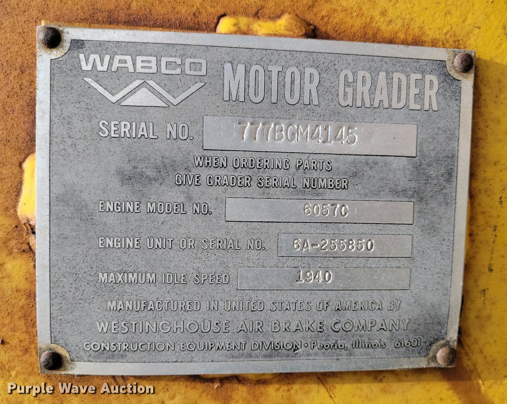 Purple Wave is selling a used Motor Grader in Iowa. This item is a 1972 Wabco 777B rigid frame motor grader with the following: Hours: 3,529 on meter