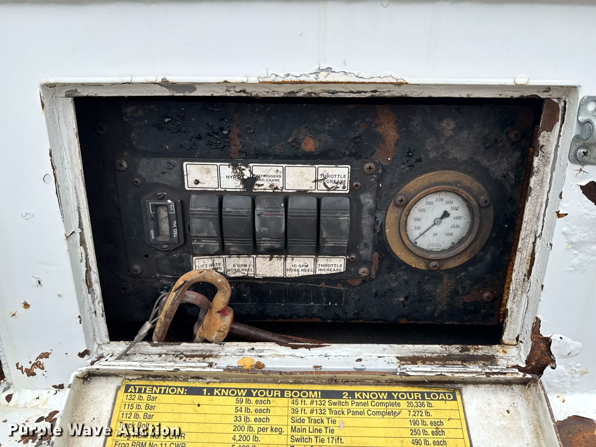 2002 Sterling Acterra utility / service truck. Miles: 296,712 on odometer, VIN: 2FZAAKAK92AJ31919. Engine Caterpillar 3216, Displacement: 7.2L, Cylinders: 6, Fuel type: Diesel. Transmission Eaton Fuller, Manual. Chassis Hi-rail system, Axles: Single, Suspension: Spring, Brakes: Air, PTO, GVWR: 33,000 lbs. Interior AC, Heat, Cruise control, Auxiliary controls. Features Bed 16' 8" L x 96" W, Crane Liftmoore 2525, Maximum boom length: 17' Maximum lift capacity: 2,500 lbs, End gate lift. Tires Size: 11R22.5. Notes Unknown operating condition of crane. Oklahoma title. Seller is an Oklahoma licensed motor vehicle dealer. Title will be assigned and distributed by the dealer. Please contact the seller for distribution questions. Collinsville, OK 74021