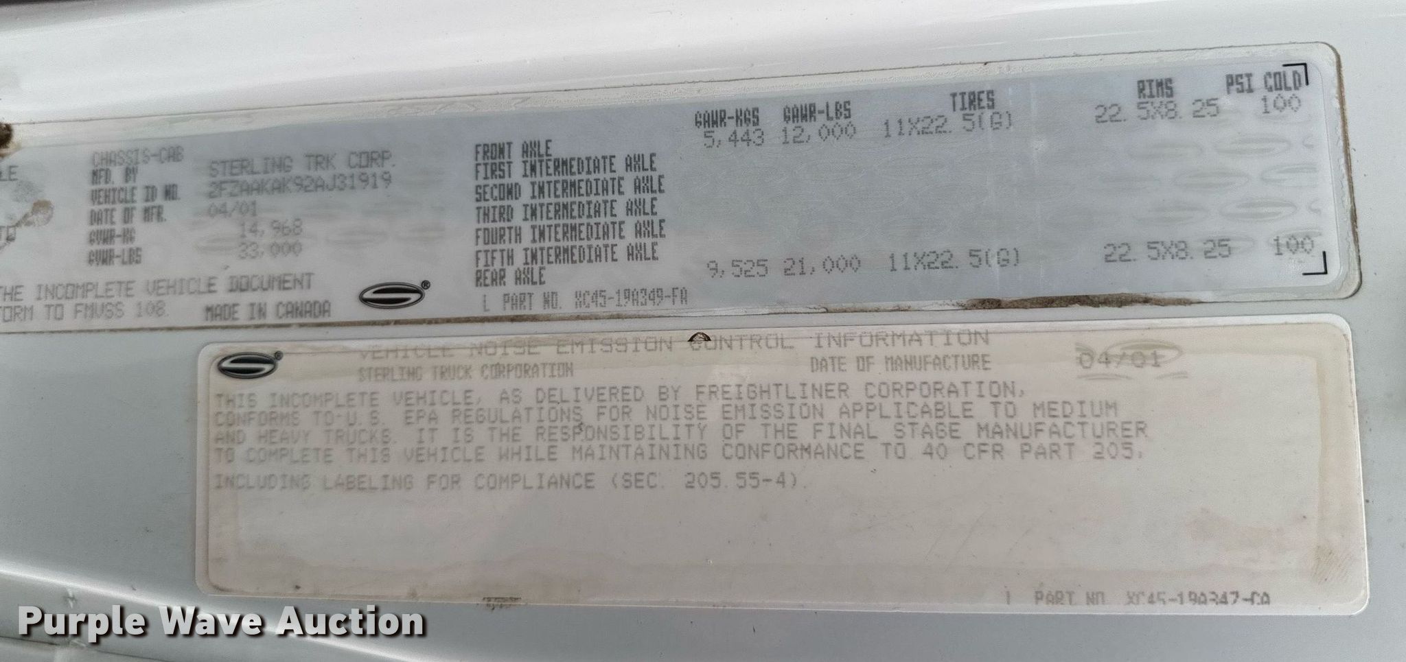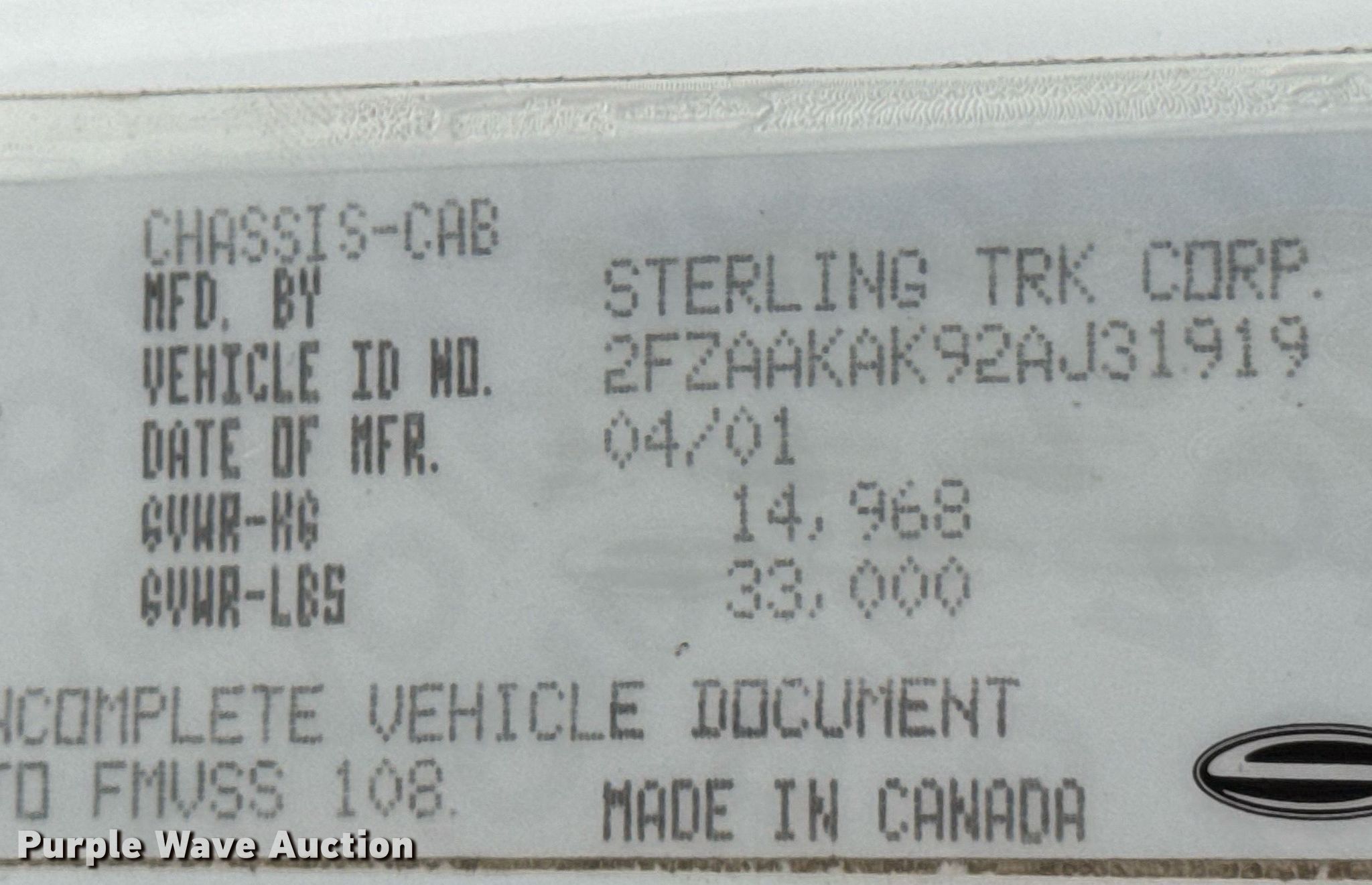 Purple Wave is selling a used Service Truck in Oklahoma. This item is a 2002 Sterling Acterra utility / service truck with the following: Miles: 296,712 on odometer, VIN: 2FZAAKAK92AJ31919