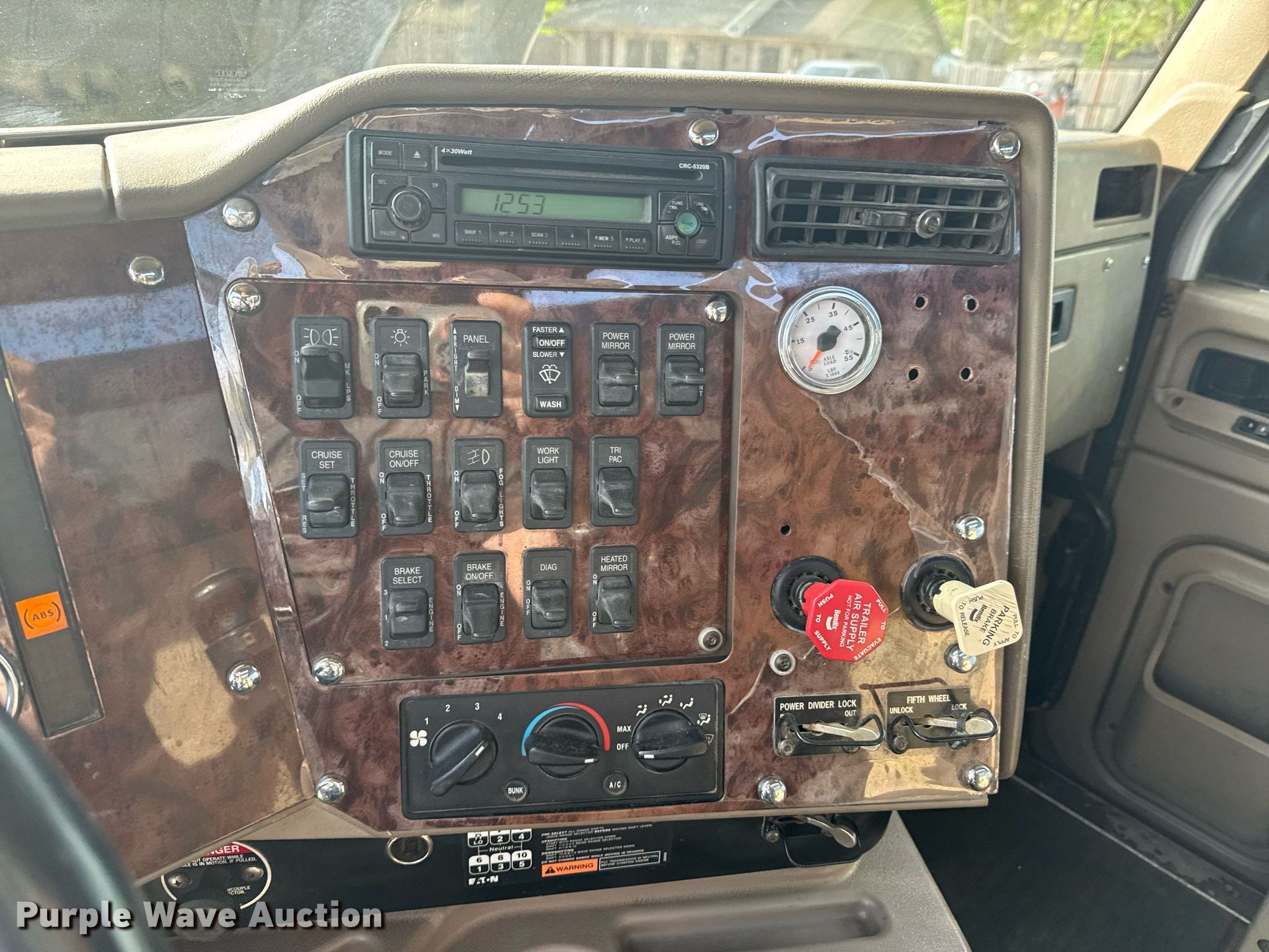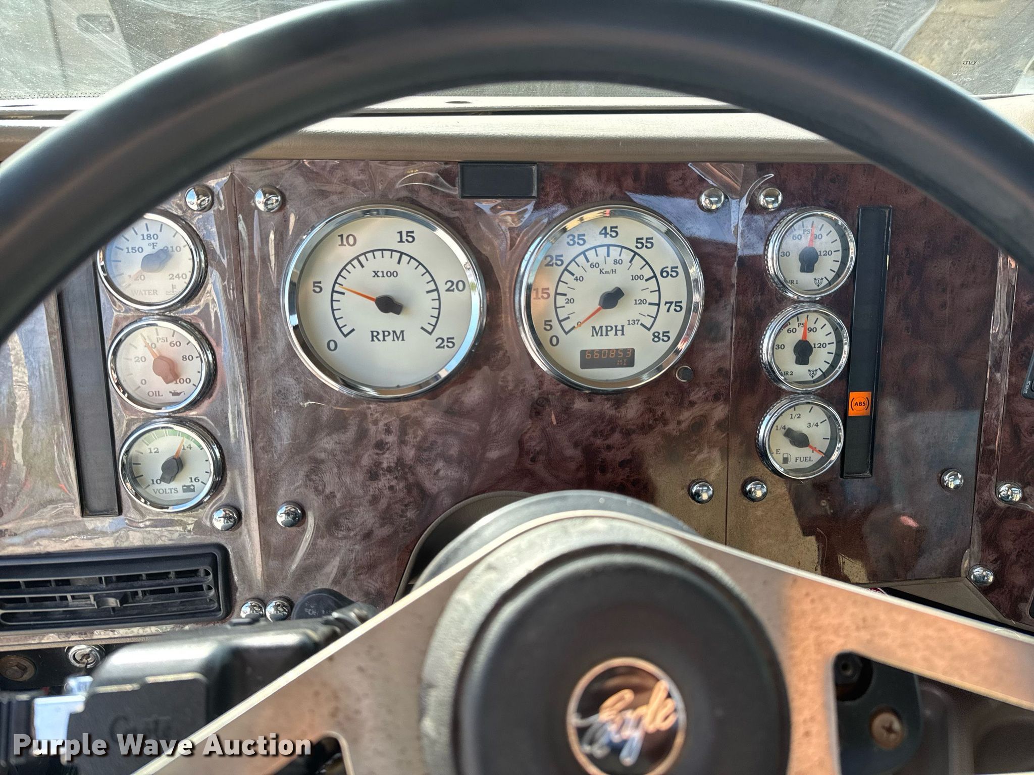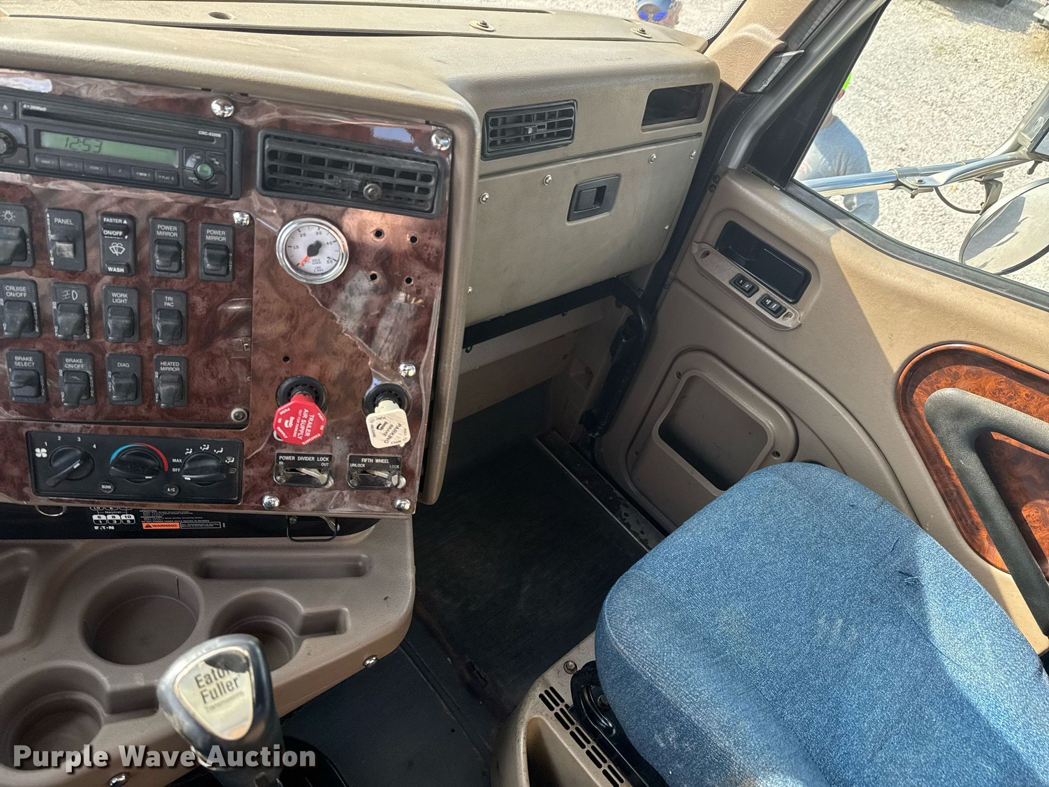 2007 International 9400i SBA flatbed truck with mud mixing system. Miles: 660,853 on odometer, VIN: 2HSCNAPR97C306519. Engine Cummins, Displacement: 14.9L, Cylinders: 6, Fuel type: Diesel. Transmission Eaton Fuller, Manual, Speed: 10. Chassis Axles: Tandem, Differential lock: Inter-axle, Suspension: Air, Brakes: Air, GVWR: 52,000 lbs. Interior AC, Heat, Heated mirrors, Power windows, Power locks, Cruise control. Features Bed / tank 20' L x 96" W, Mud mixing system, Capacity: 3,000 gallons, (2) Honda GX160 Fuel type: Gas, Pump, Top fill. Tires Front: 275/80R22.5, Rear: 295/75R22.5. Notes Dash warning indicator: ABS, Engine replaced March, 2025. View repairs. Arkansas title. Title distribution may be delayed up to 14 days from verification of funds. Big M Ranch Inc. Rogers, AR 72756