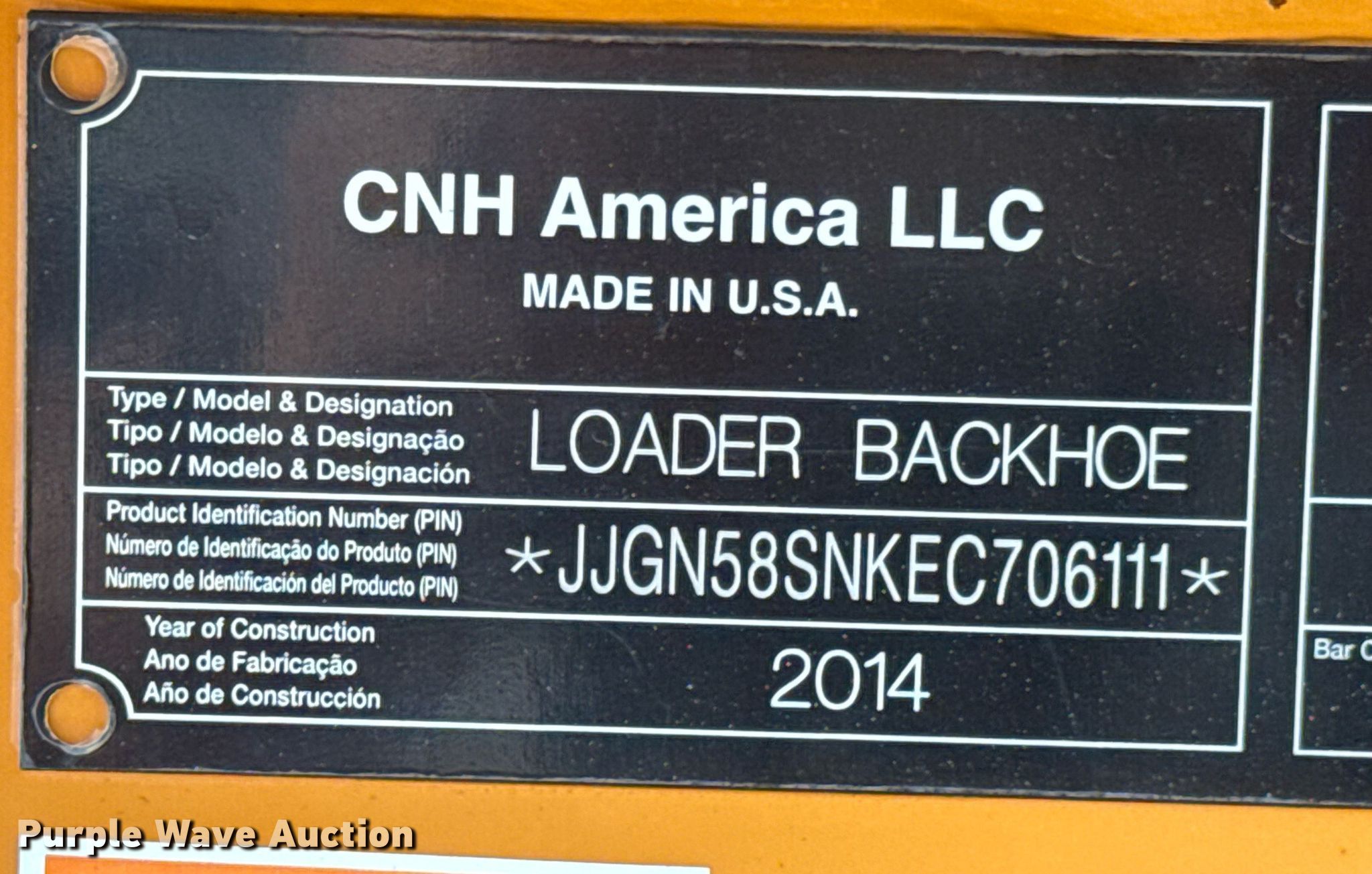 Purple Wave is selling a used Tractor Loader Backhoe in Arkansas. This item is a 2014 Case 580 Super N backhoe with the following: Hours: 3,523 on meter, Serial: JJGN58SNKEC706111