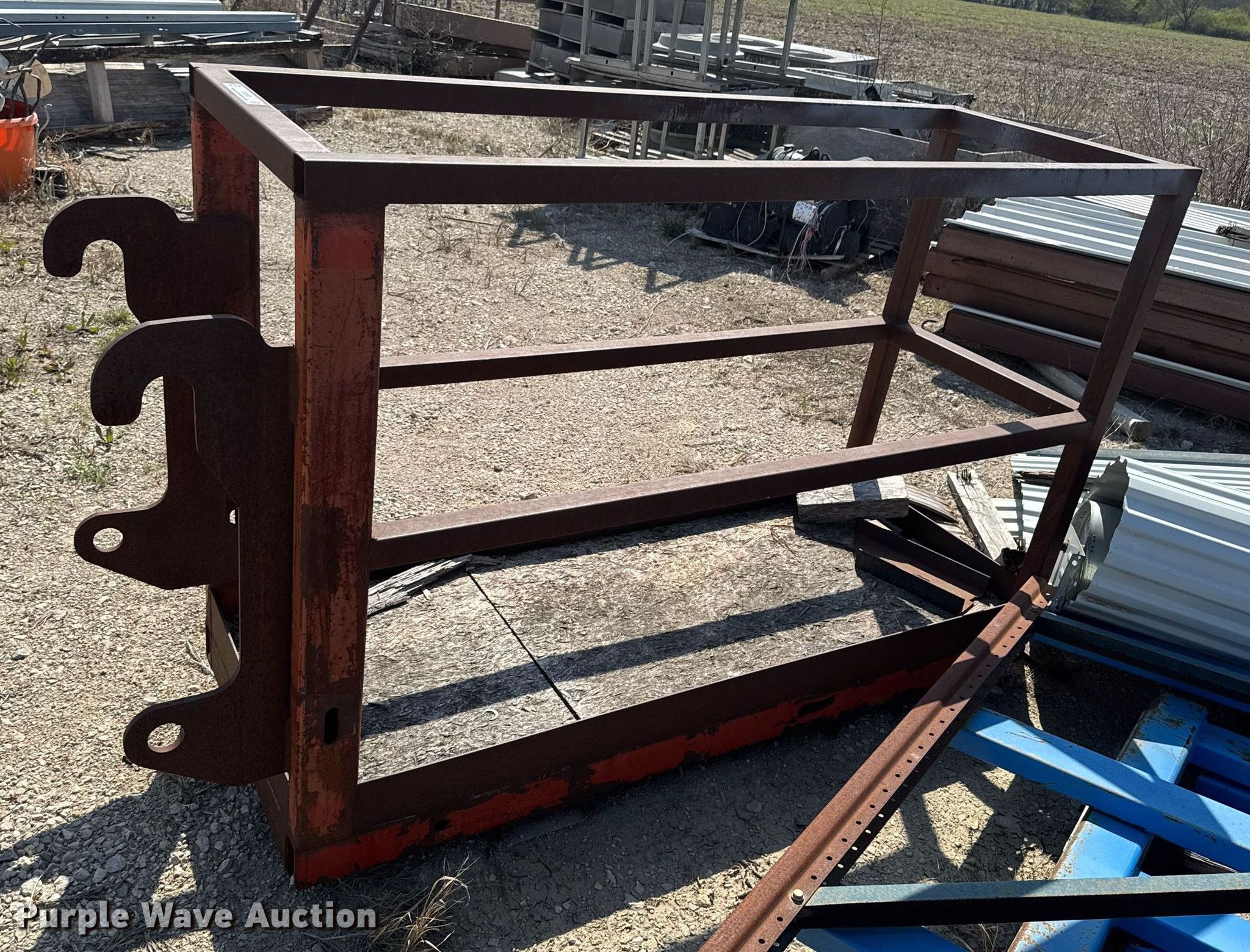 Purple Wave is selling a used Forklift Attach. in Kansas. This item is a Telehandler Basket with the following: 70" L x 26" W, Forklift fork mounts