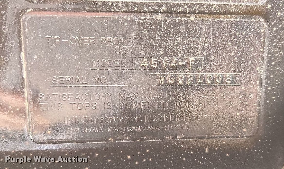 Purple Wave is selling a used Mini Excavator in Missouri. This item is a IHI 45V4-F mini excavator with the following: Hours: 1,142 on meter, Serial: WG020008