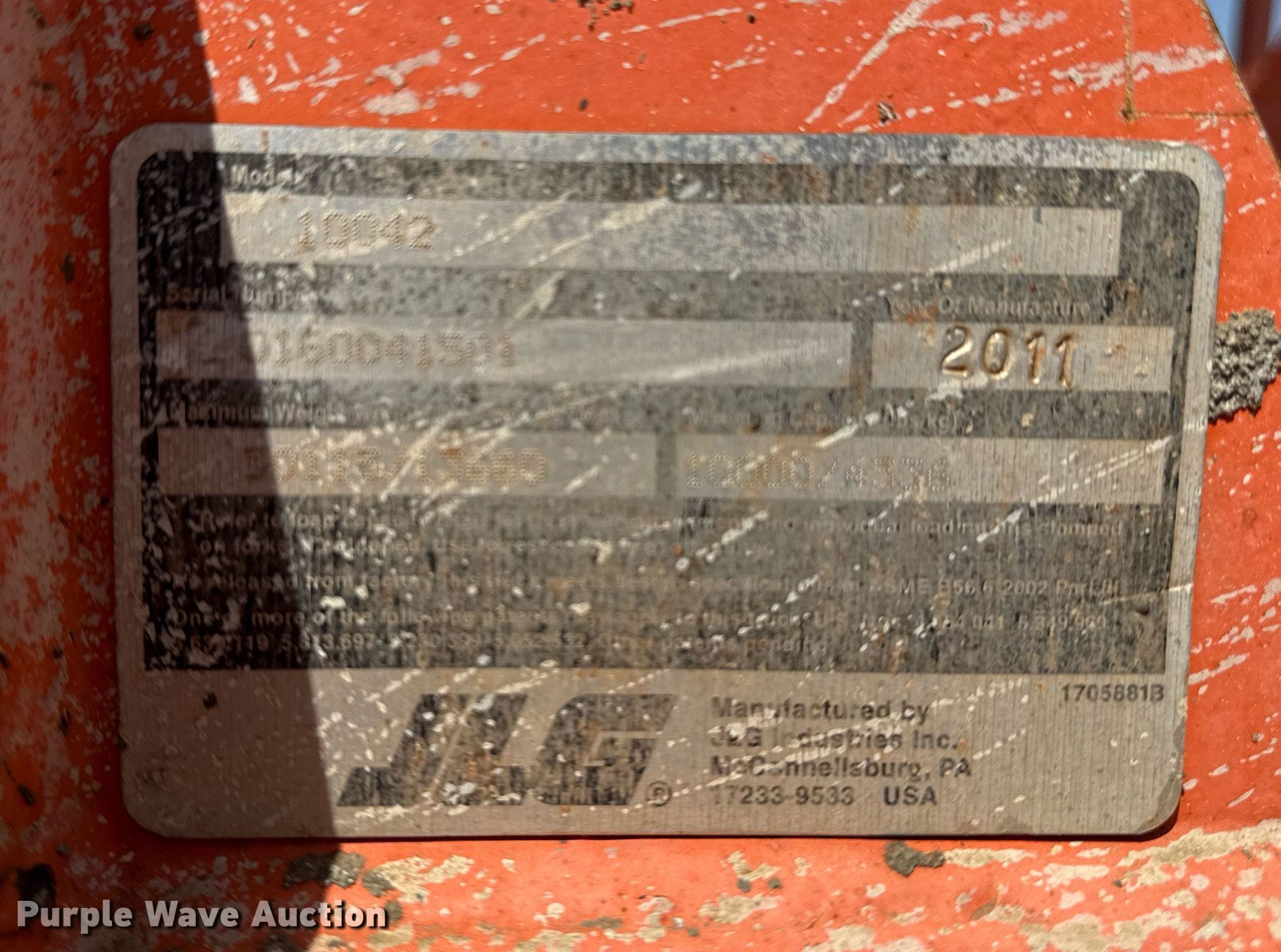 Purple Wave is selling a used Telehandler in Oklahoma. This item is a 2011 JLG 10042 telehandler with the following: Hours: 6,737 on meter, Serial: 0160041501, Unit #: 80-168