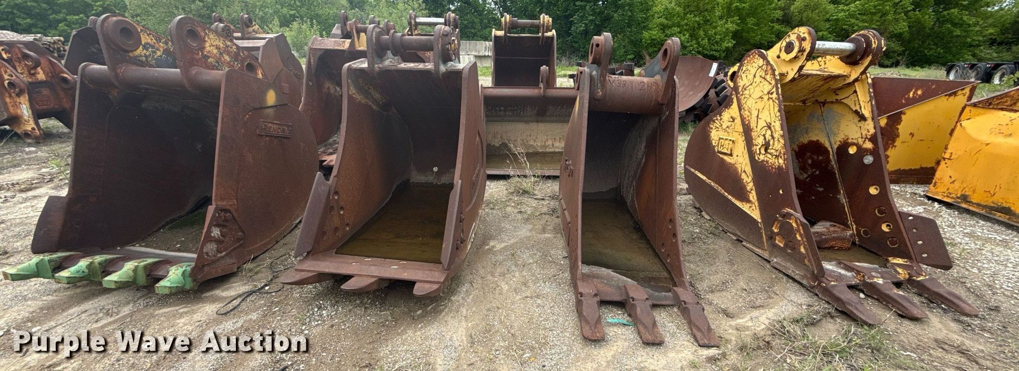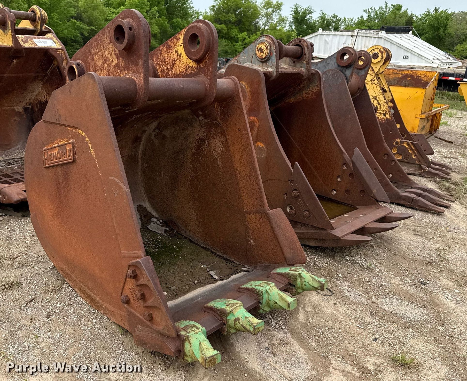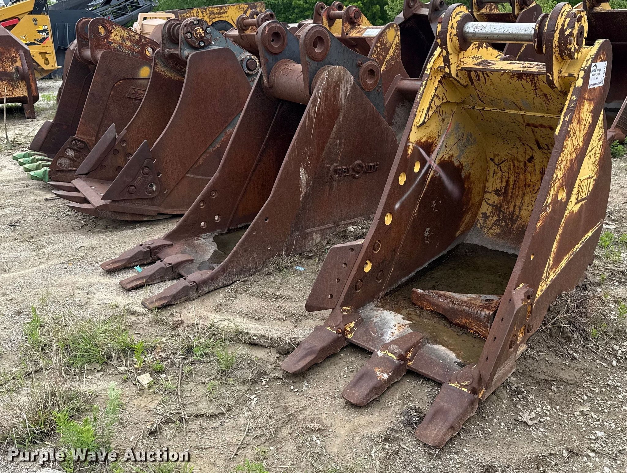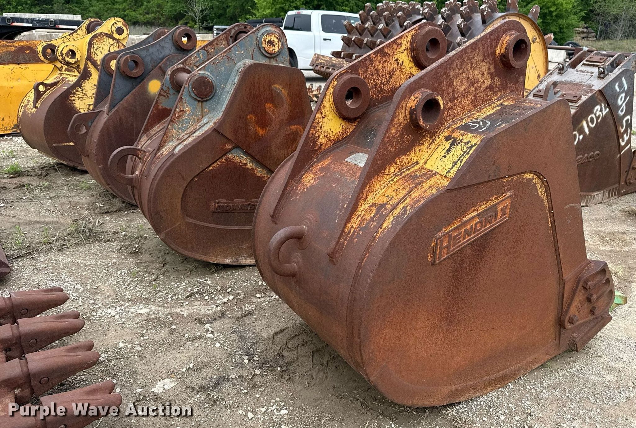Purple Wave is selling a used Bucket or Loader Attach. in Oklahoma. This item is a (4) buckets with the following: Caterpillar, Width: 28�, Teeth: 3, Kirby Smith, Width: 24�, Teeth: 3, Komatsu, Width: 31�, Teeth: 3, Hendrix, Width: 36�, Teeth: 4