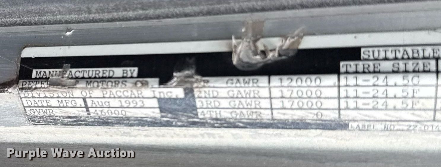 1994 Peterbilt 379 dump truck. Miles: 1,423,064 on odometer, VIN: 1XP5DR8X8RD347600. Engine Detroit Diesel Series 60, Displacement: 12.7L, Cylinders: 6, Fuel type: Diesel, Engine brake. Transmission Manual. Chassis Axles: Triple, Pusher axle, Differential lock: Inter-axle, Suspension: Air Dump valves, Brakes: Air, PTO, GVWR: 46,000 lbs FAWR: 12,000 lbs, IAWR: 17,000 lbs, RAWR: 17,000 lbs. Interior AC, Heat, Cruise control. Features Dump bed 16' L x 96" W, Side height: 36", Side board height: 23", Bed type: Steel, Roll tarp, Ram: Single, End gate: Air operated. Tires Size: 11R24.5. Missouri title. Title distribution may be delayed up to 14 days from verification of funds. Fender Trucking. Saint Joseph, MO 64501