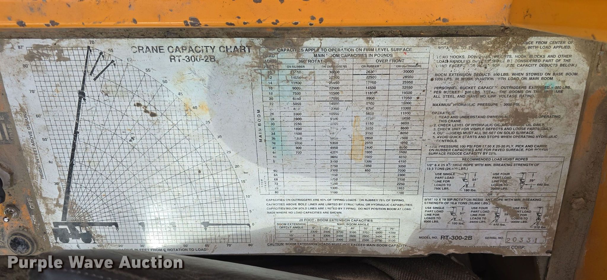 Purple Wave is selling a used Rough or All Terrain Crane in Nebraska. This item is a 1999 Broderson RT-300-2B crane with the following: Hours: 6,827 on meter, Serial: 20331
