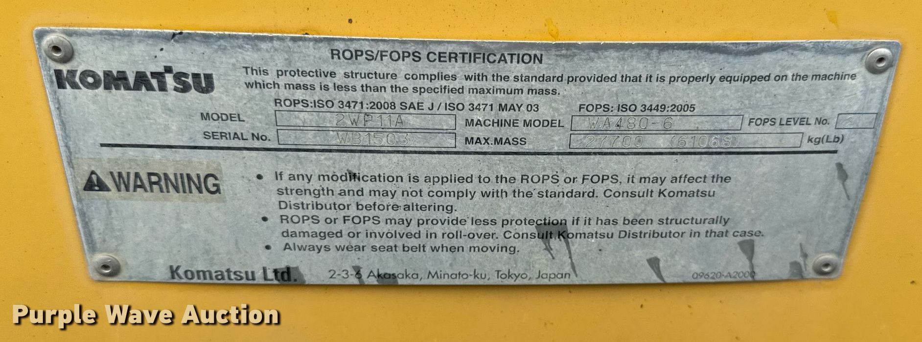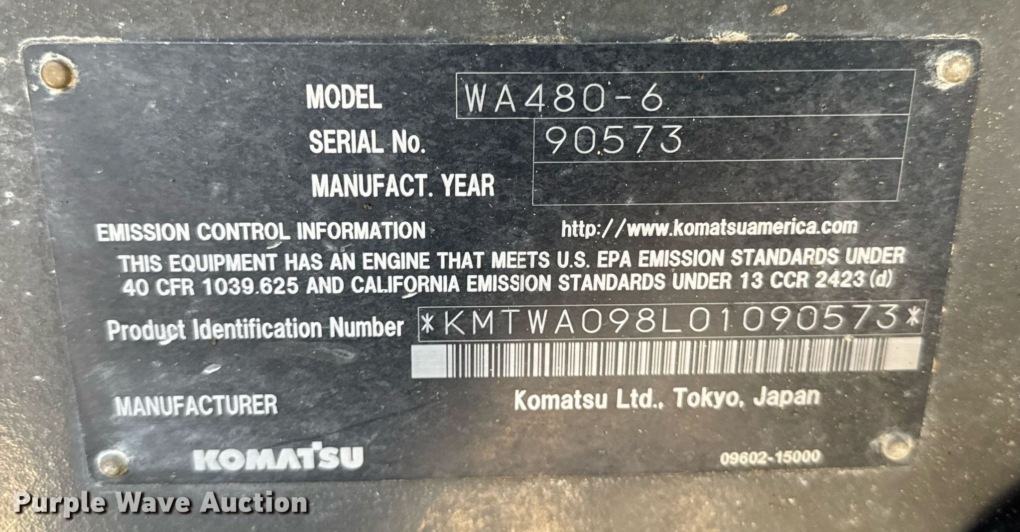 Purple Wave is selling a used Wheel Loader in Missouri. This item is a 2012 Komatsu WA480-6 wheel loader with the following: Miles: 35,250 on odometer, Hours: 13,435 on meter, Unit #: 40-205