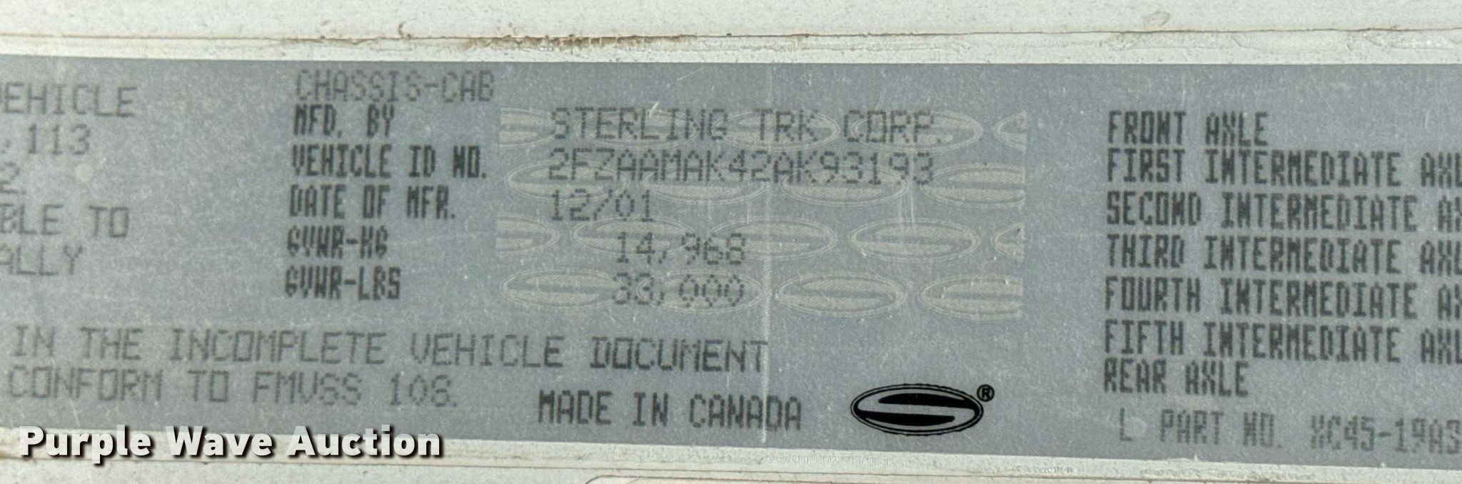 Purple Wave is selling a used Flat Bed Truck in Missouri. This item is a 2002 Sterling Acterra dump flatbed truck with the following: Miles: 191,934 on odometer, Hours: 5,175 on meter, VIN: 2FZAAMAK42AK93193, Unit #: 29