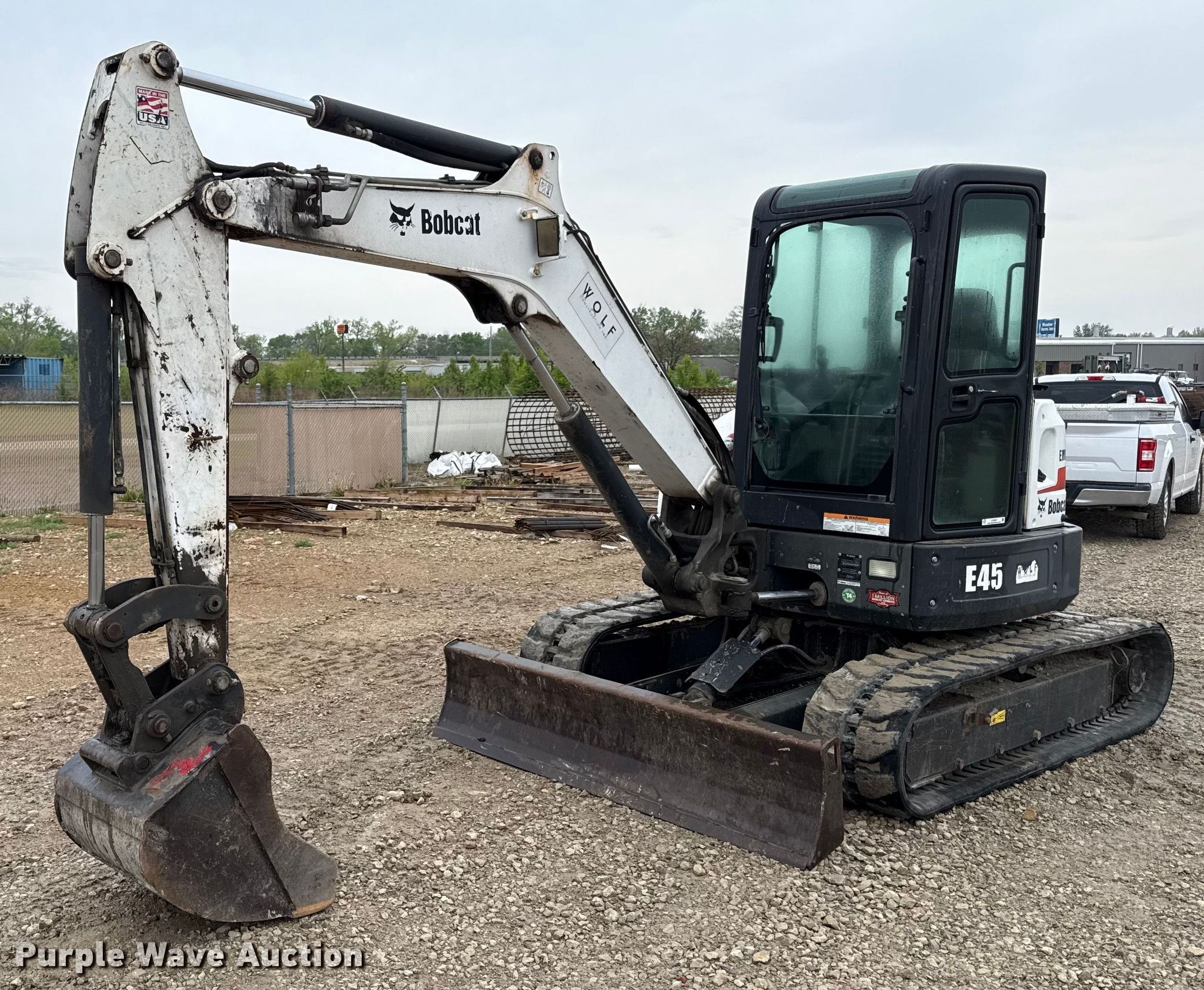 Purple Wave is selling a used Mini Excavator in Kansas. This item is a 2015 Bobcat E45 mini excavator with the following: Hours: 4,048 on meter, Serial: B2VY11789
