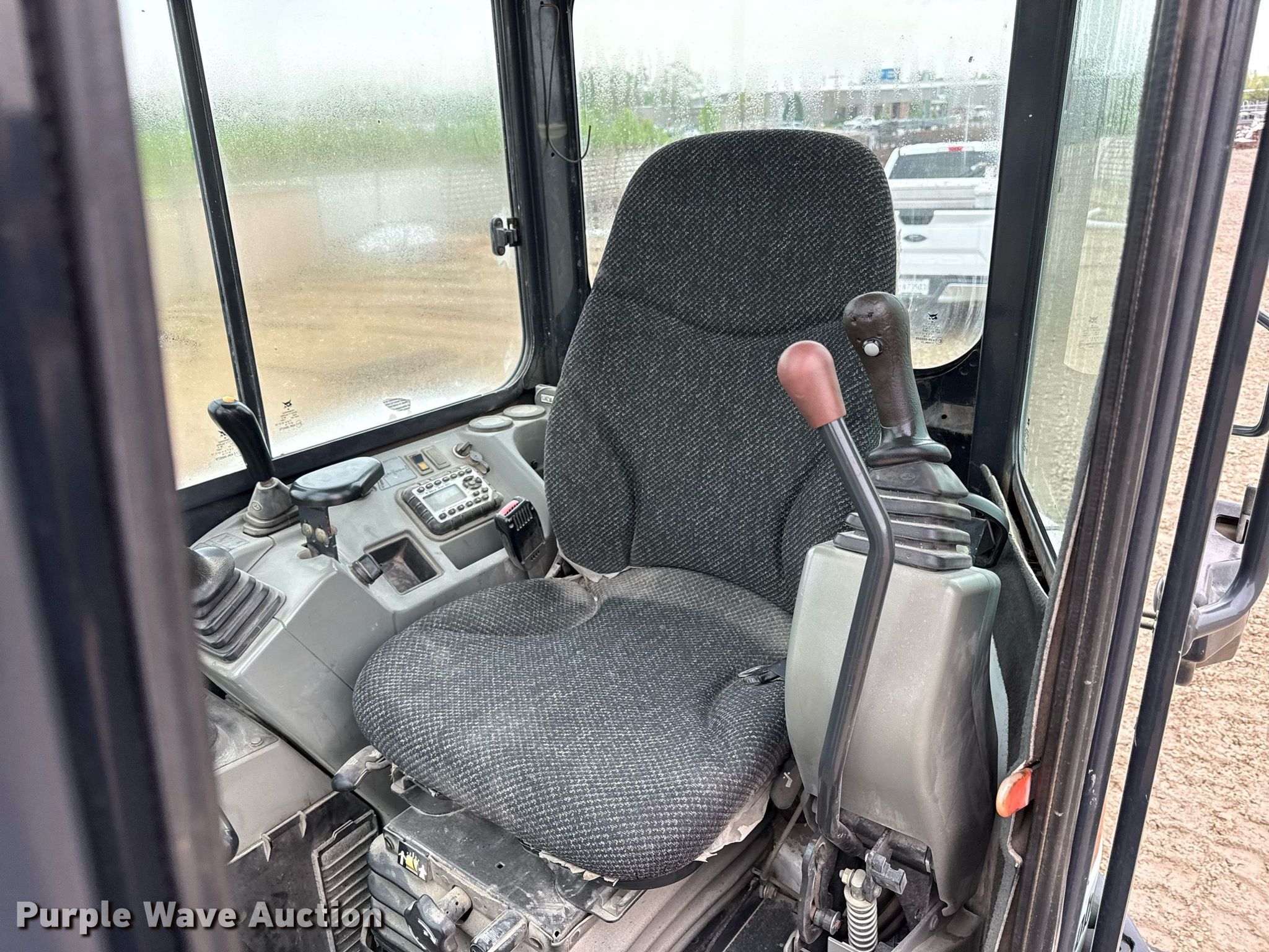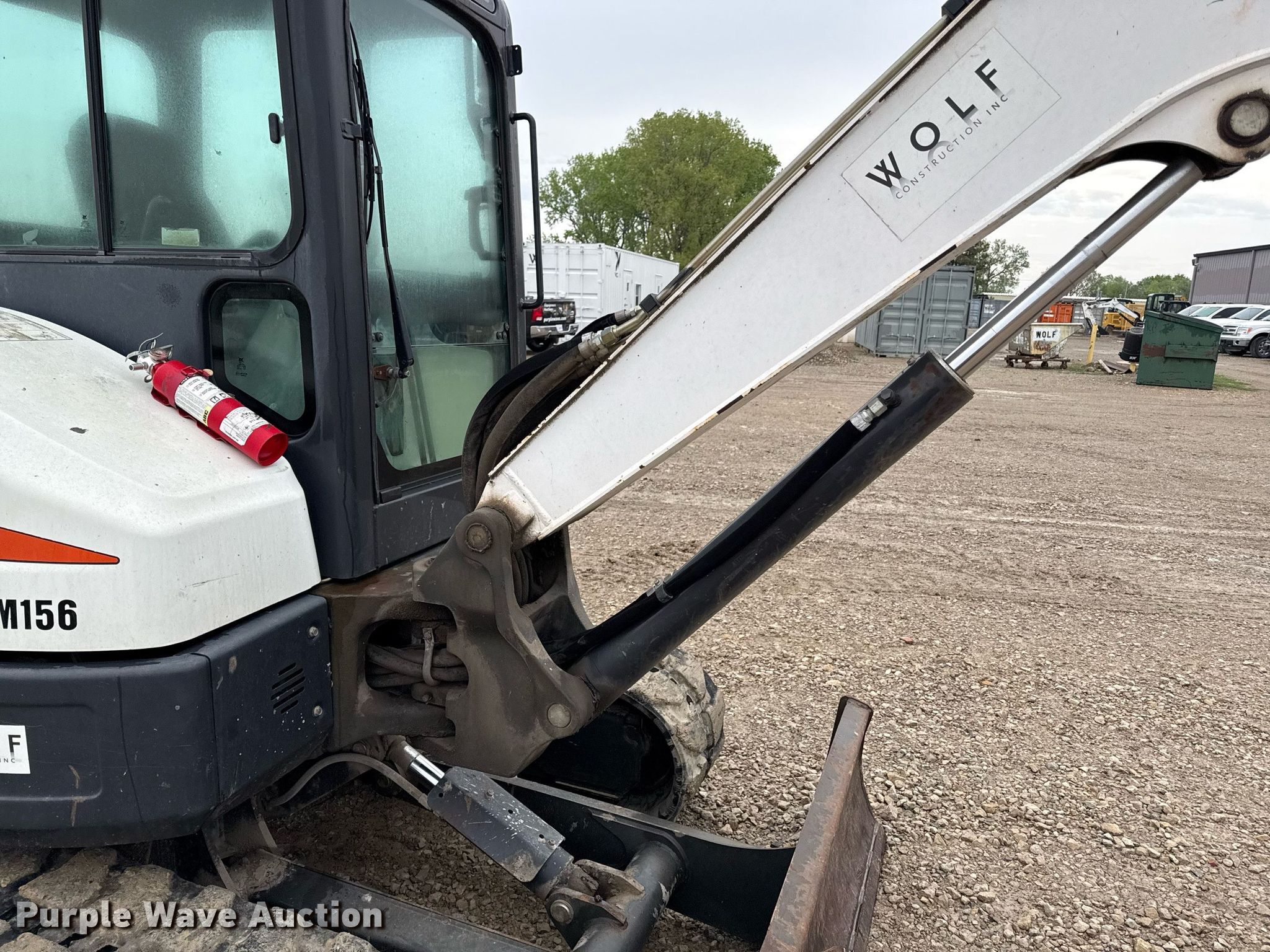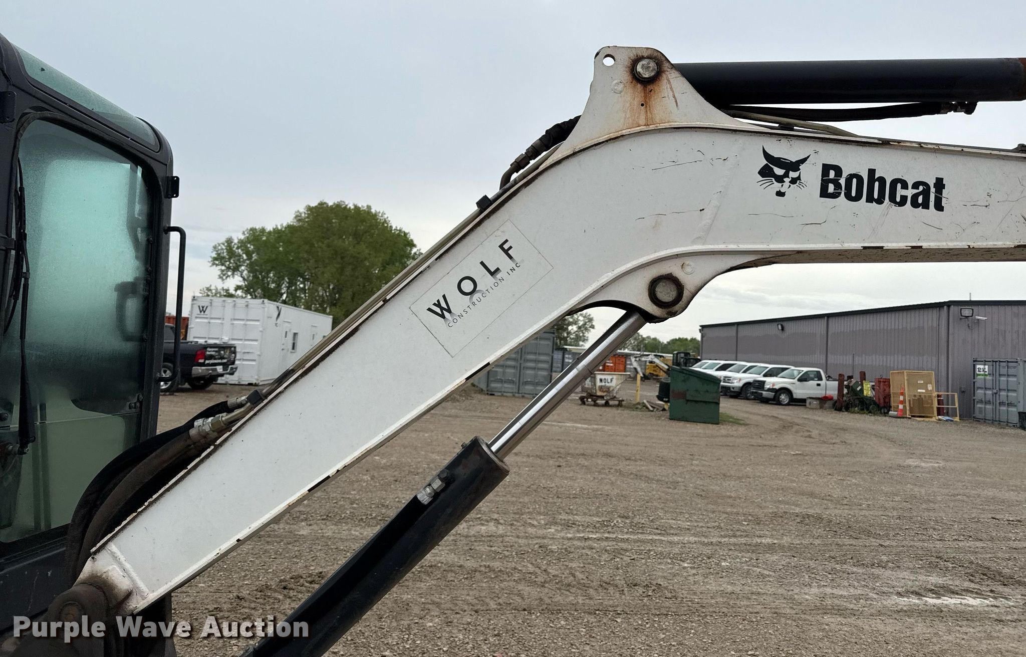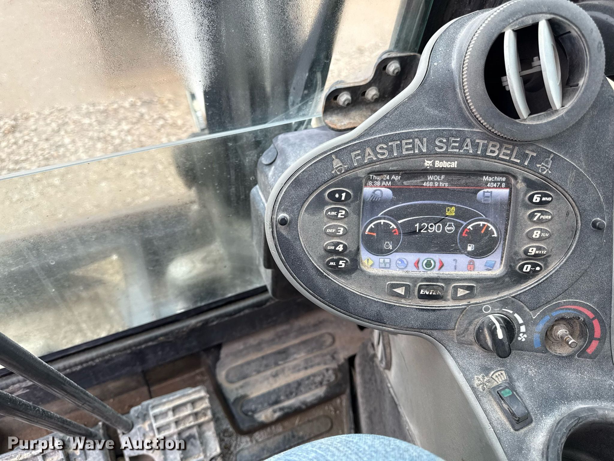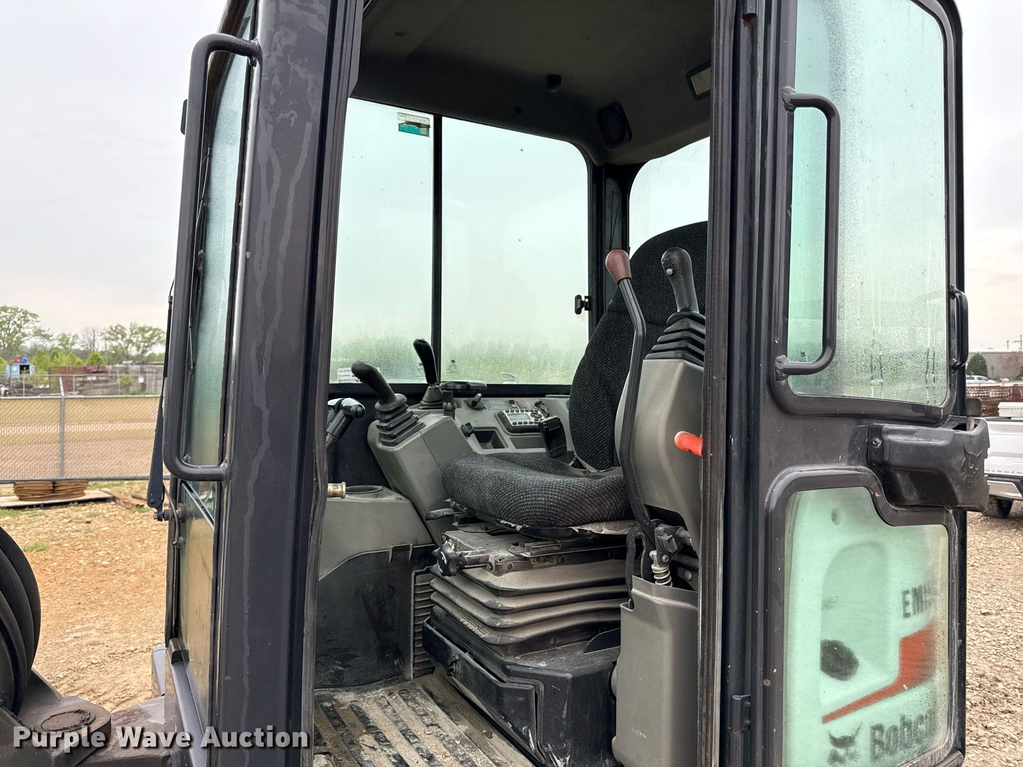 2015 Bobcat E45 mini excavator. Hours: 4,048 on meter, Serial: B2VY11789. Engine Cylinders: 4, Fuel type: Diesel. Transmission Hydrostatic. Operators station Enclosed cab, AC, Heat. Features Auxiliary hydraulics Two-way, Backfill blade Width: 77", Boom Swing, Stick Stick length: 4' 7", Quick coupler: Hydraulic Bobcat, Bucket Bobcat, Width: 24". Tracks Width: 16", Rubber. Wolf Construction. Topeka, KS 66609