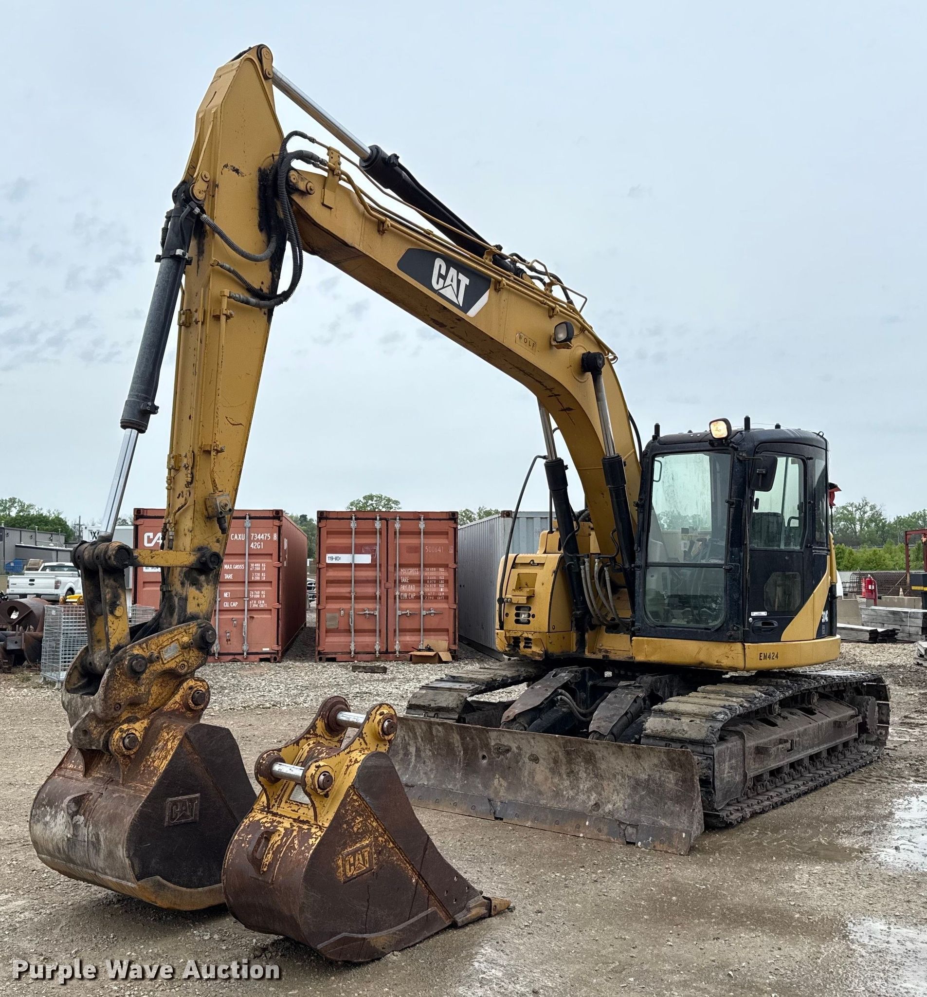 2008 Caterpillar 314CL CR excavator. Hours: 3,107 on meter Actual hours unknown, Serial: CAT0314CPPCA01693. Engine Caterpillar, Cylinders: 6, Fuel type: Diesel. Transmission Hydrostatic, Two speed travel. Operators station Enclosed cab, AC, Heat. Features Auxiliary hydraulics, Backfill blade Width: 101", Boom Standard, Stick Stick length: 8' 3", Quick coupler: Hydraulic Caterpillar, Bucket Caterpillar, Width: 36", Teeth: 6, Bucket Caterpillar, Width: 24", Teeth: 4. Tracks Width: 19.5", Grouser pads: Triple, Track pads: Rubber. Notes Rubber pads missing, Hour meter replaced at approximately 4,600 hours. Wolf Construction. Topeka, KS 66609