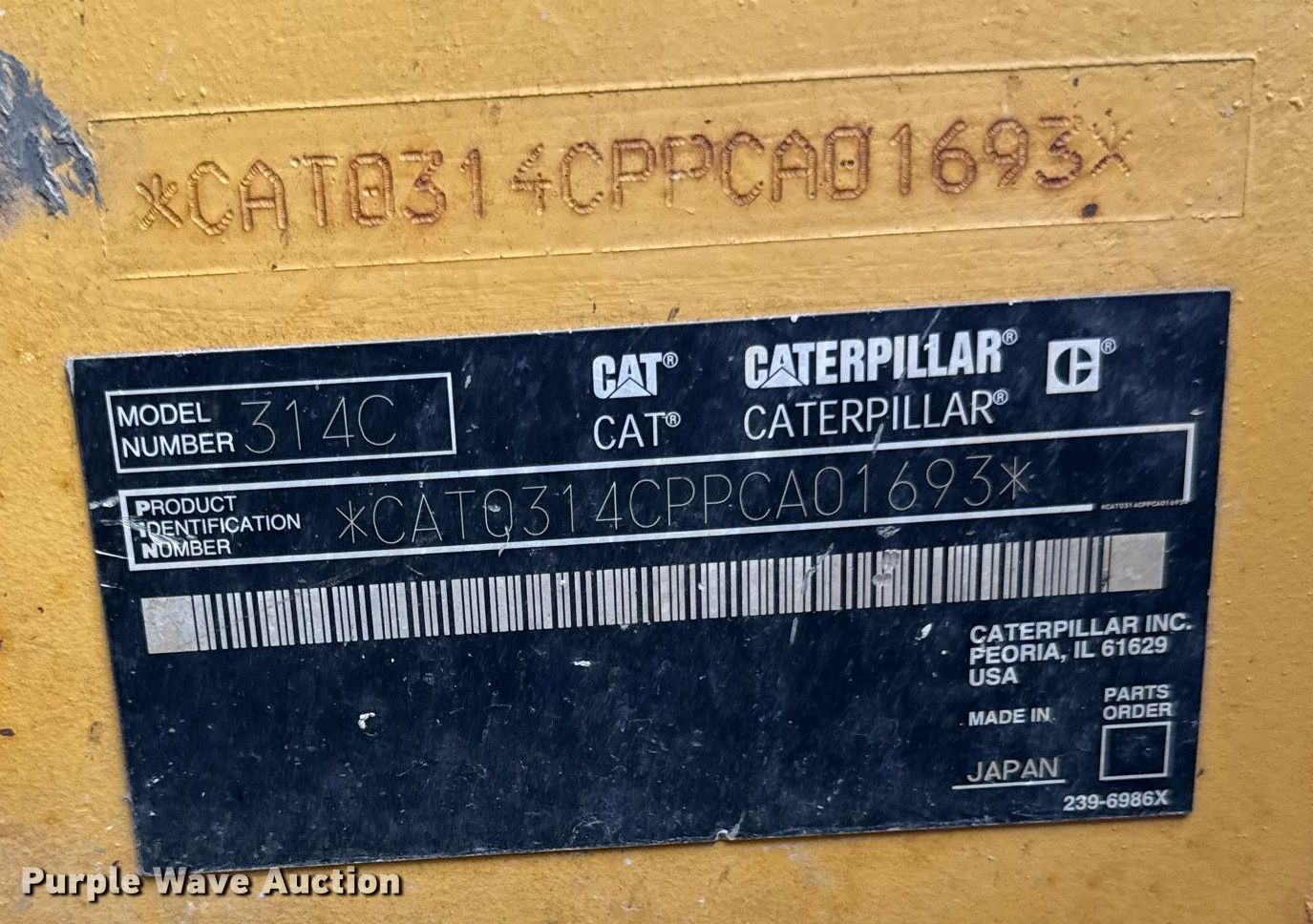 Purple Wave is selling a used Hydraulic Excavator in Kansas. This item is a 2008 Caterpillar 314CL CR excavator with the following: Hours: 3,107 on meter, Actual hours unknown, Serial: CAT0314CPPCA01693