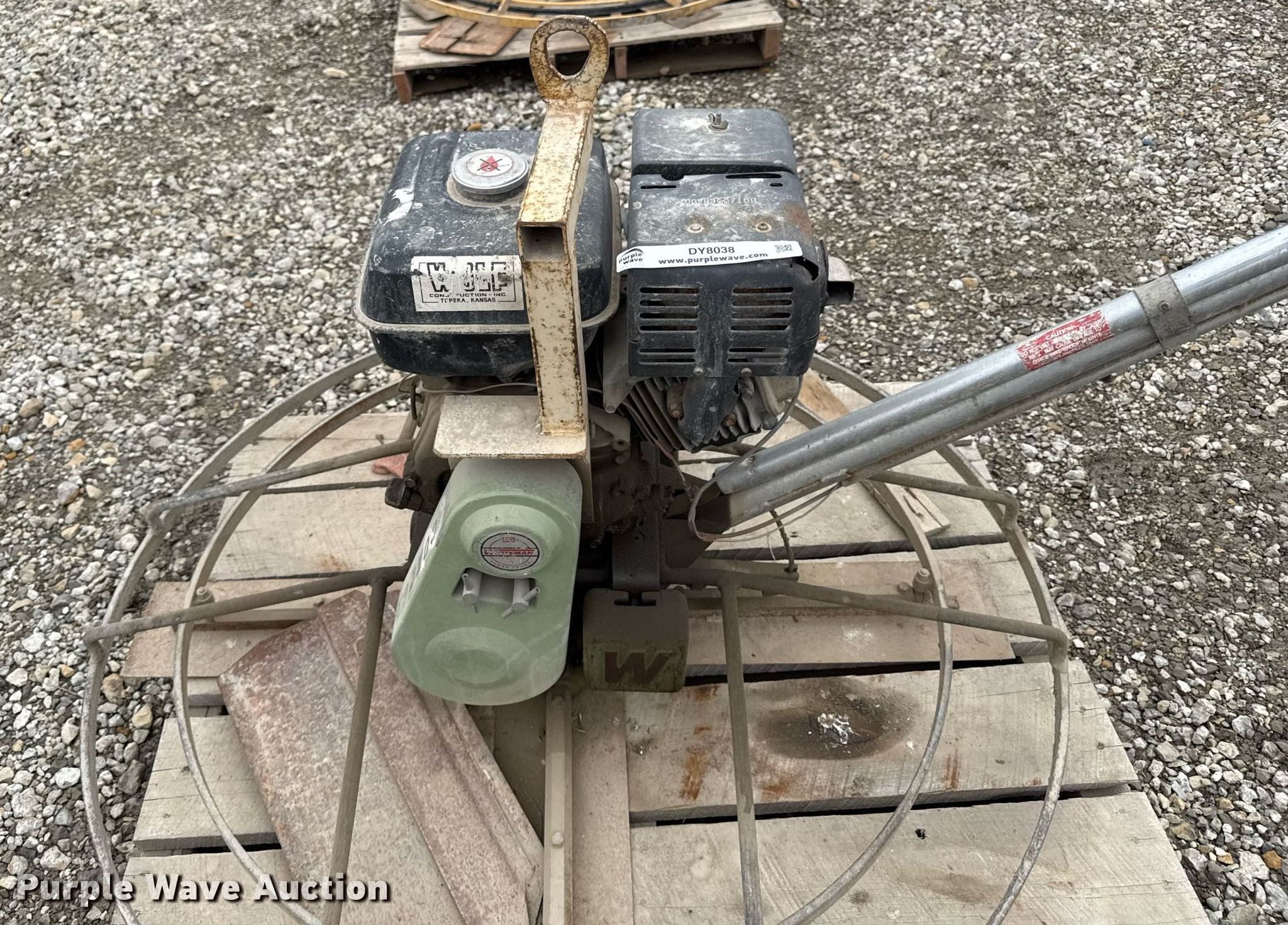 Whiteman power trowel. Engine. Honda, Fuel type: Gas, HP: 8. Features Width: 40". Wolf Construction. Topeka, KS 66609