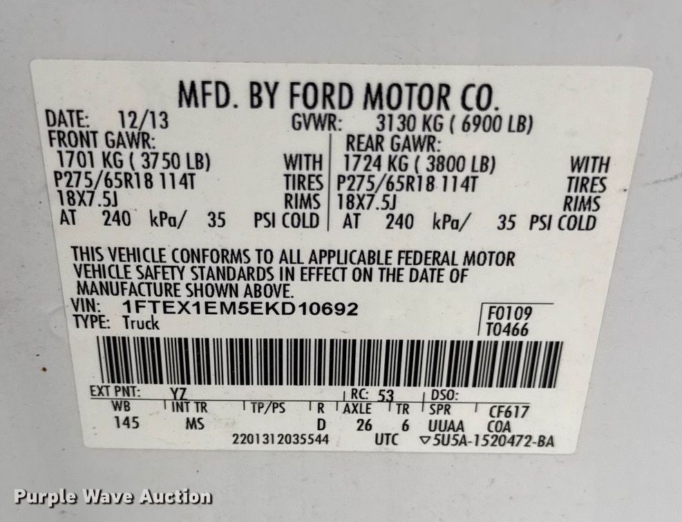 Purple Wave is selling a used 1/2 Ton Pickup or Van in Kansas. This item is a 2014 Ford F150 SuperCab pickup truck with the following: Miles: 252,811 on odometer, VIN: 1FTEX1EM5EKD10692