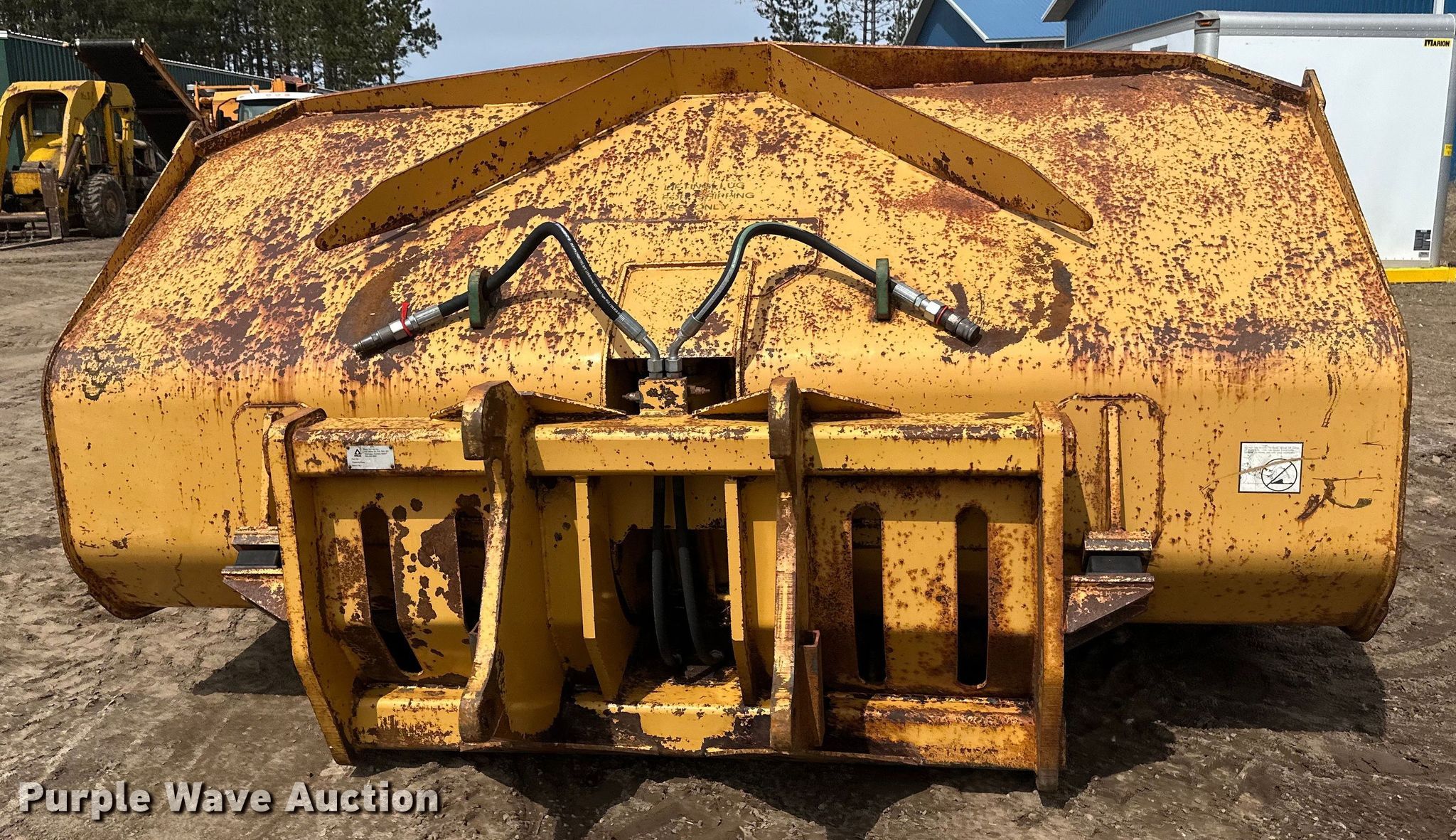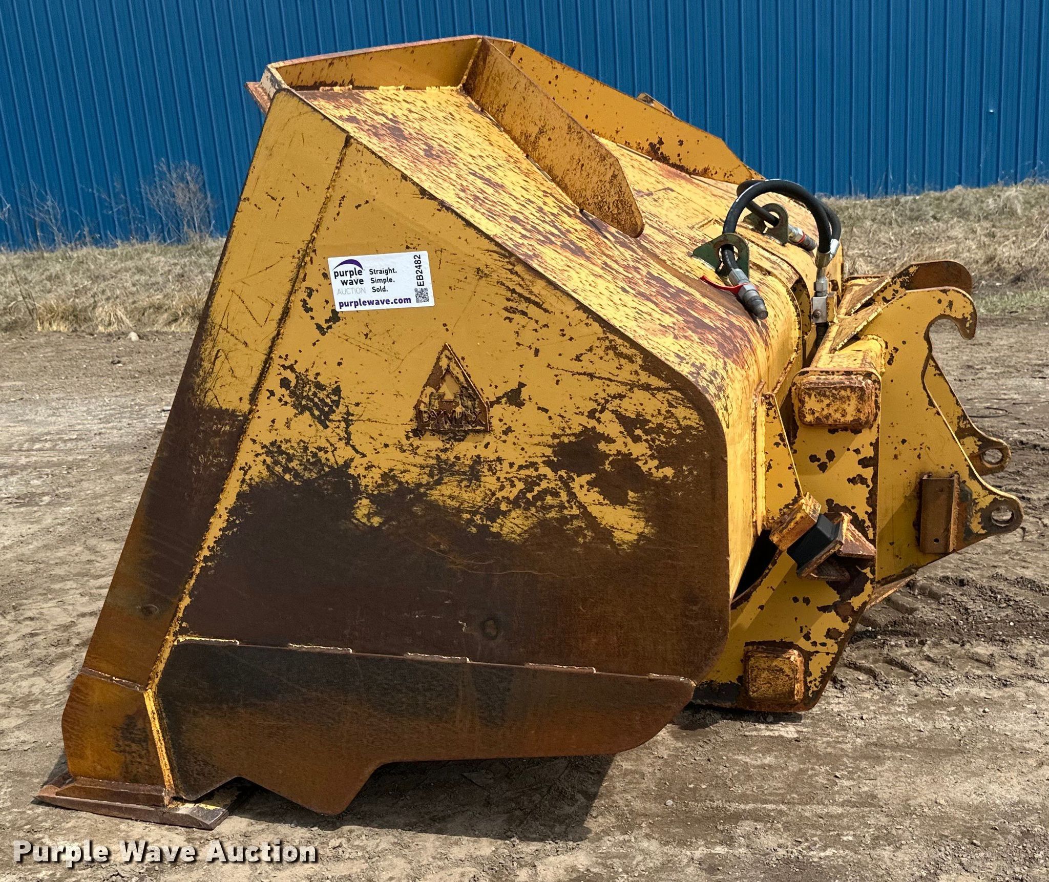 Purple Wave is selling a used Wheel Loader Attach. in Wisconsin. This item is a Dymax wheel loader rollout bucket with the following: Width: 117", Cutting edge: Bolt on, Removed from Caterpillar 930H