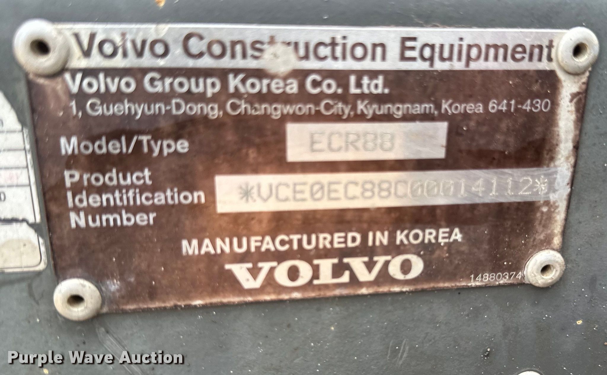 Purple Wave is selling a used Mini Excavator in Wisconsin. This item is a 2008 Volvo ECR88 mini excavator with the following: Hours: 5,687 on meter, Serial: VCE0EC88C00014112