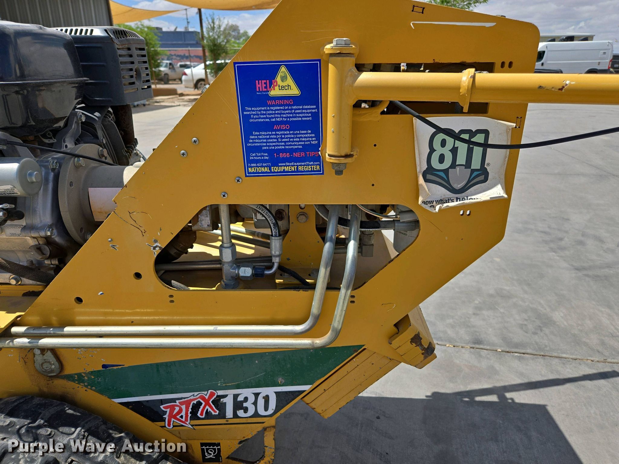 2017 Vermeer RTX 130 trencher. Hours: Unknown, Serial: 1VR5071P6H1000309. Engine Honda GX390, Serial: GCBOT-2453006, Fuel type: Gas, HP: 13. Transmission Hydrostatic. Features Trencher Model: RTX 130, Estimated dig depth: 36", Cutting width: 4". Tracks Width: 7", Rubber. Notes Non-operational hour meter. ABC Rentals. Casa Grande, AZ 85122