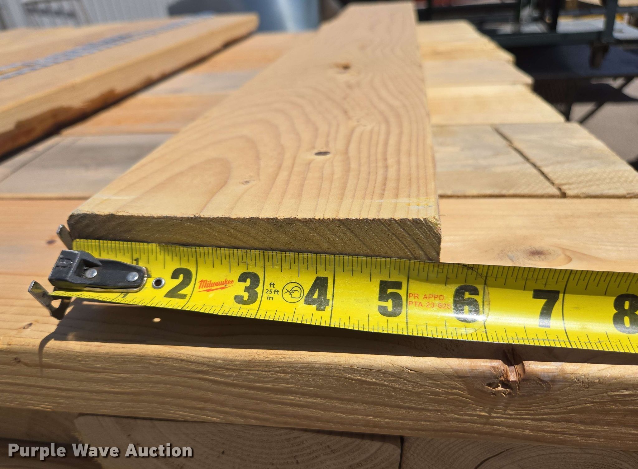 Pallet racking. Overall dimensions: 42" W x 20' H, Shelving planks: 38" L x 5 1/4 W. Notes Contents on rack not included, Stack of wood not included. All aspects of disassembly are the sole responsibility of the purchaser. All items must be removed by June 10, 2025. Sunlight Electric & Mechanical Co.. El Paso, TX 79915