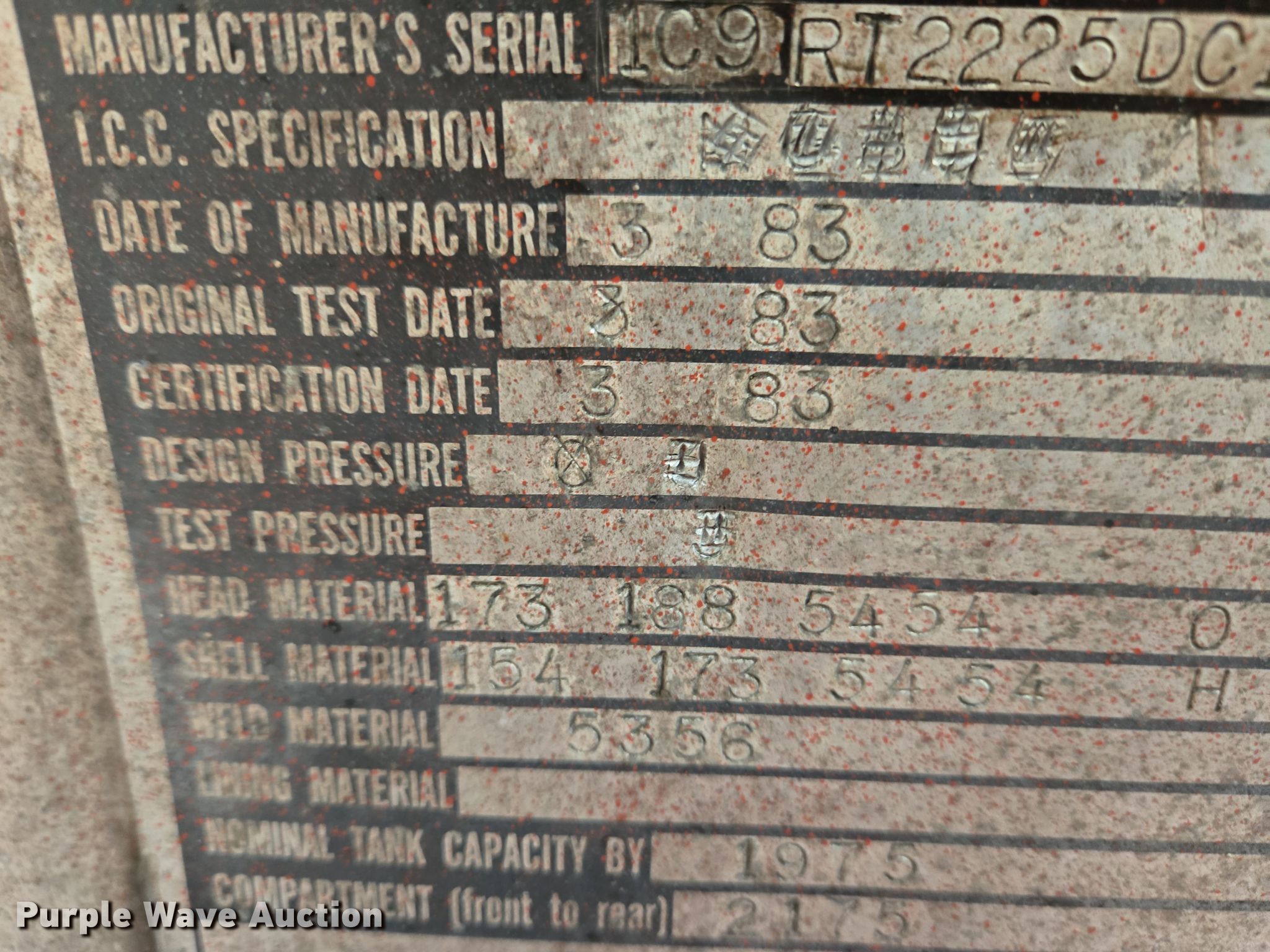 Purple Wave is selling a used Tank Trailer in Kentucky. This item is a 1983 Clough Equipment Co. tank trailer with the following: VIN: 1C9RT2225DC129035