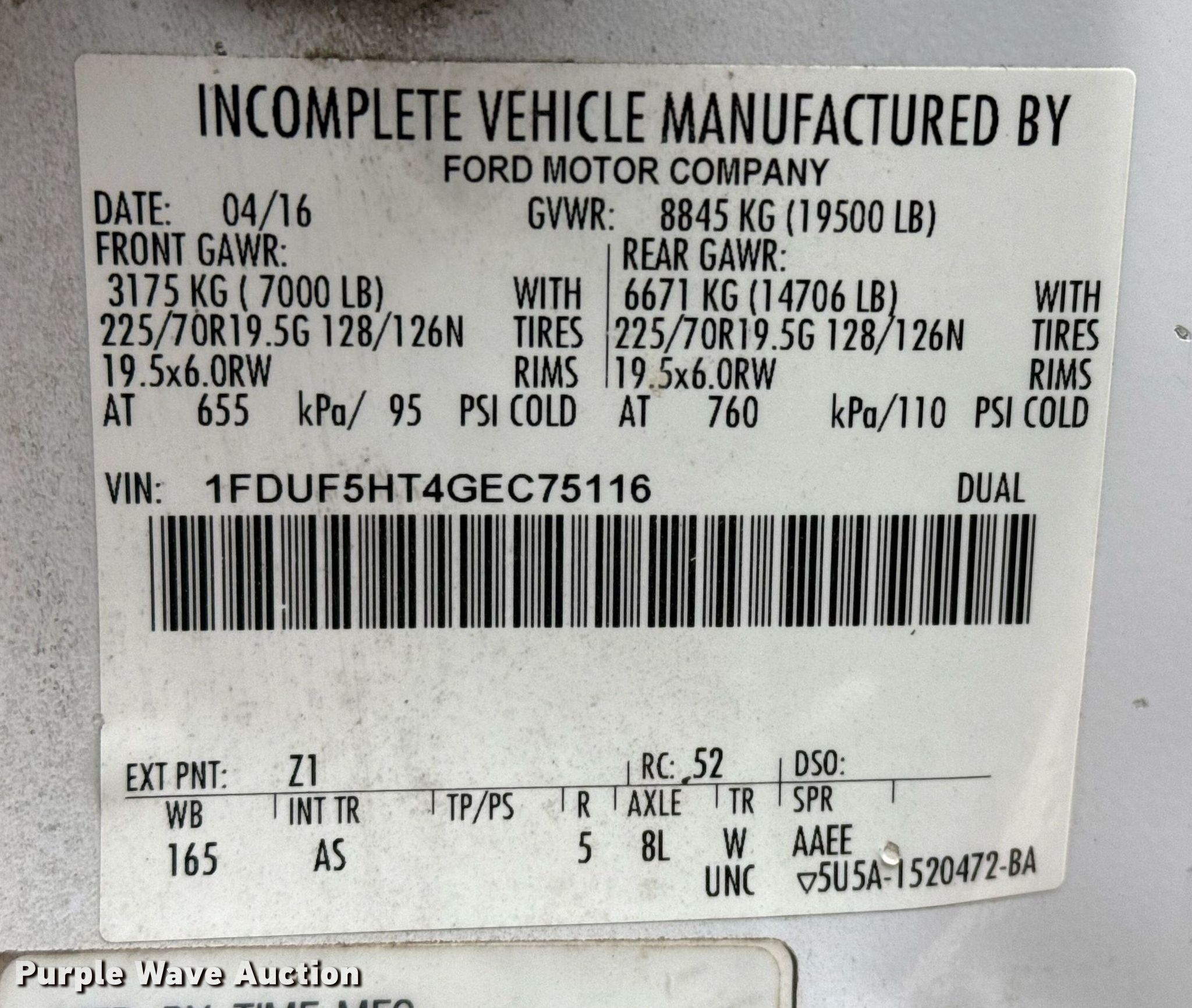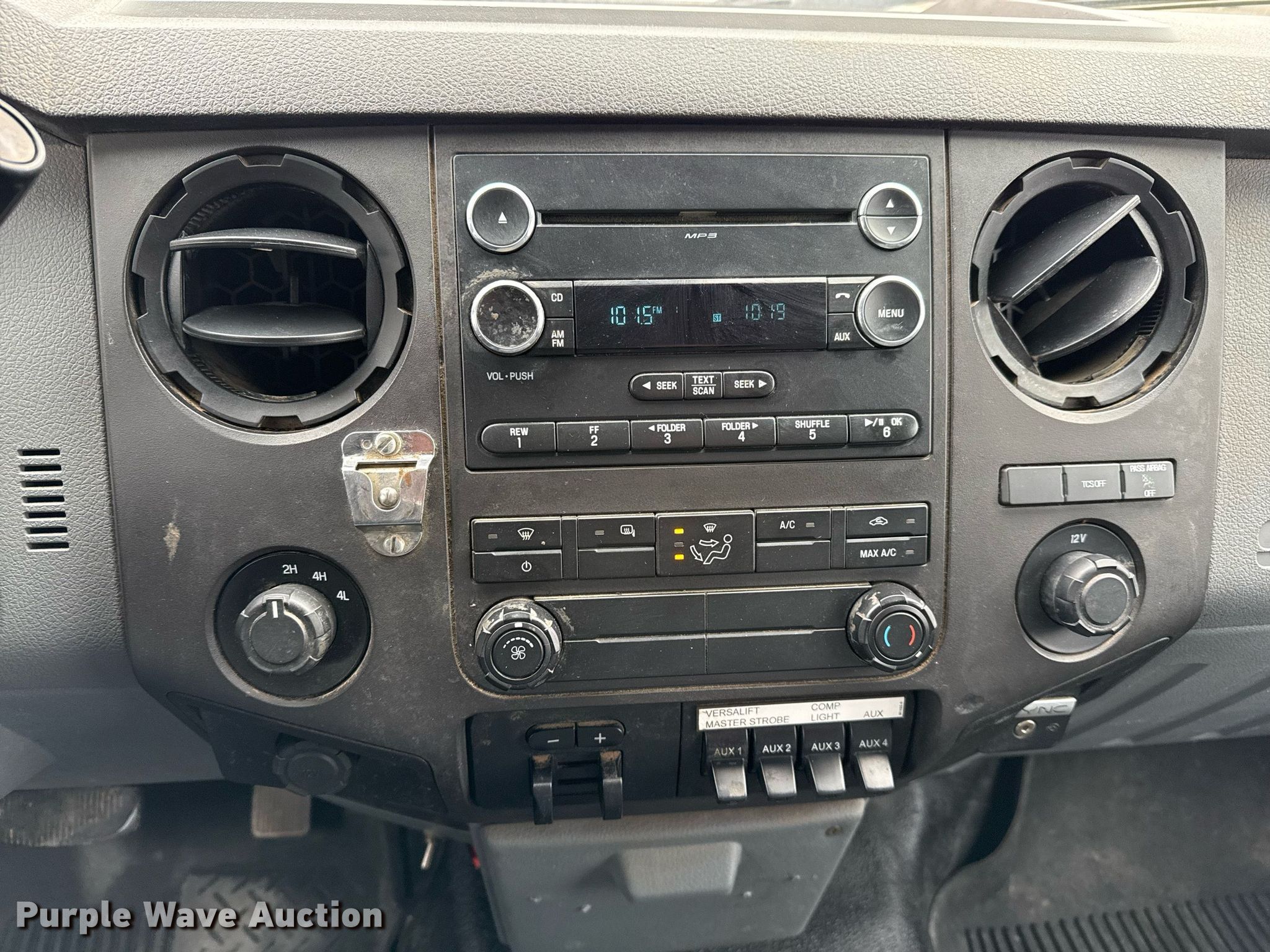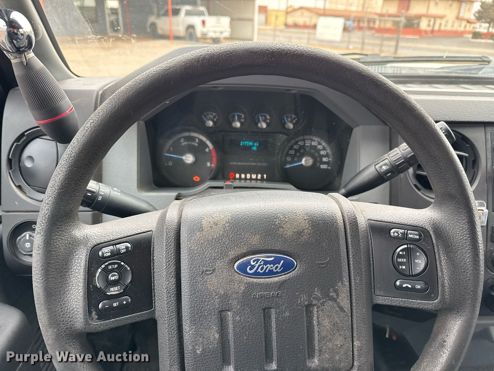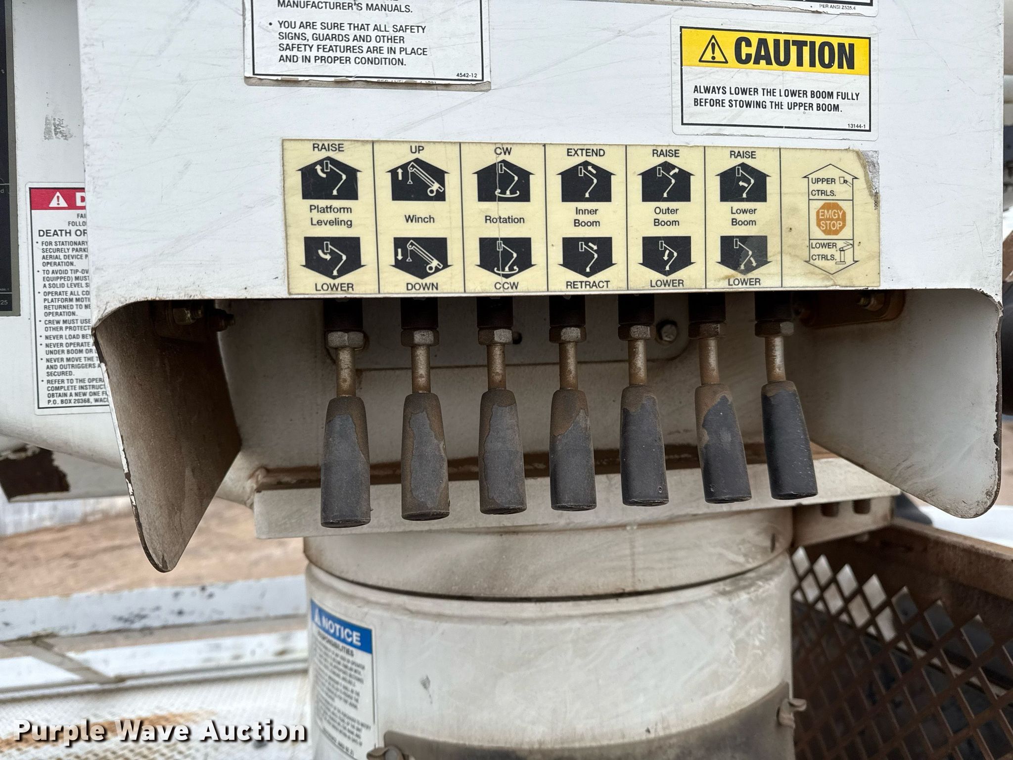 2016 Ford F550 Super Duty XL bucket truck. Miles: 217,598 on odometer, VIN: 1FDUF5HT4GEC75116. Engine Displacement: 6.7L V8 OHV, Cylinders: 8, Fuel type: Diesel. Transmission Automatic. Chassis Four wheel drive, Axles: Single, Suspension: Spring, Brakes: Hydraulic, PTO, Wet kit, GVWR: 19,500 lbs, Wheelbase: 165". Interior AC, Heat, Heated mirrors, Power windows, Power locks, Cruise control, Auxiliary controls, Brake controller. Features Bed Dakota Bodies 132-SB, Serial: DB24773, 13' 6" L x 94" W, Boom Versalift VST-40I, Serial: KW160177, Maximum lift capacity: 600 lbs, Maximum lift height: 40', Boom type: Articulating, Insulated, Telescopic, Man basket, Boom controls Ground, Platform/ basket, Material handler. Tires Size: 225/70R19.5. Notes Dash warning indicator: Check engine, Dead battery. Texas title. Title distribution may be delayed up to 30 days from verification of funds. Lamesa, TX 79331