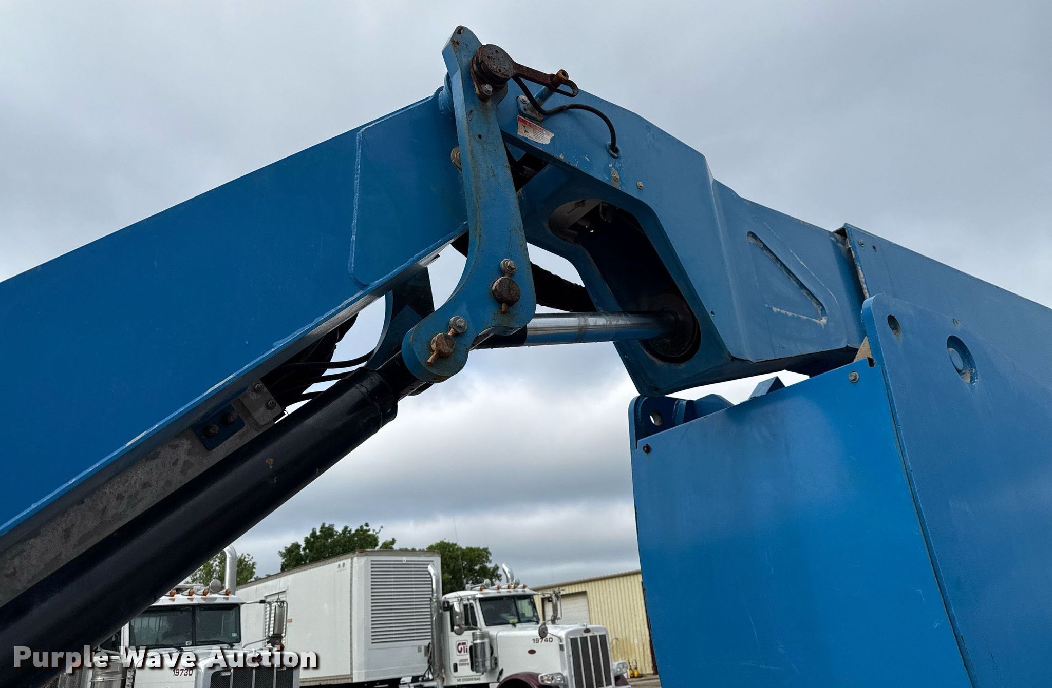 2006 Genie Z-135/70 boom lift. Hours: 4,476 on meter, Serial: 213506-310. Engine Deutz BF 4L 2011, Serial: 10135595, Displacement: 3.109L, Cylinders: 4, Fuel type: Diesel, HP: 78, kW: 58. Chassis Four wheel drive, Steering: Crab, Four wheel. Features Rough terrain, Boom type: Articulating, Telescopic, Maximum lift capacity: 600 lbs, Maximum reach length: 69', Maximum lift height: 135', Hydraulic extendable jib, Platform: 96" L x 36" W, AC power outlet, Controls: Platform, Ground, Platform rotation: Hydraulic, Safety alarm, Extendable axles. Tires Tire size: 445/65D22.5, Foam filled. GTI Energy Services. Balch Springs, TX 75180