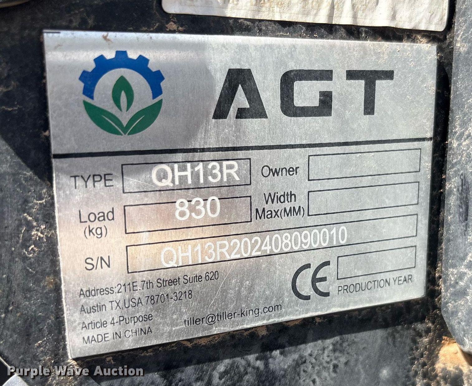 Purple Wave is selling a used Mini Excavator in Texas. This item is a 2024 AGT QH13R mini excavator with the following: Serial: QH13R202408090010