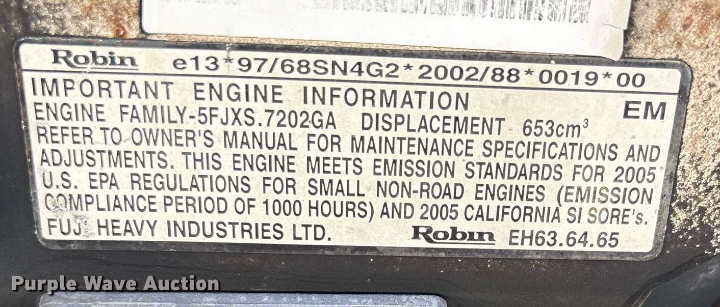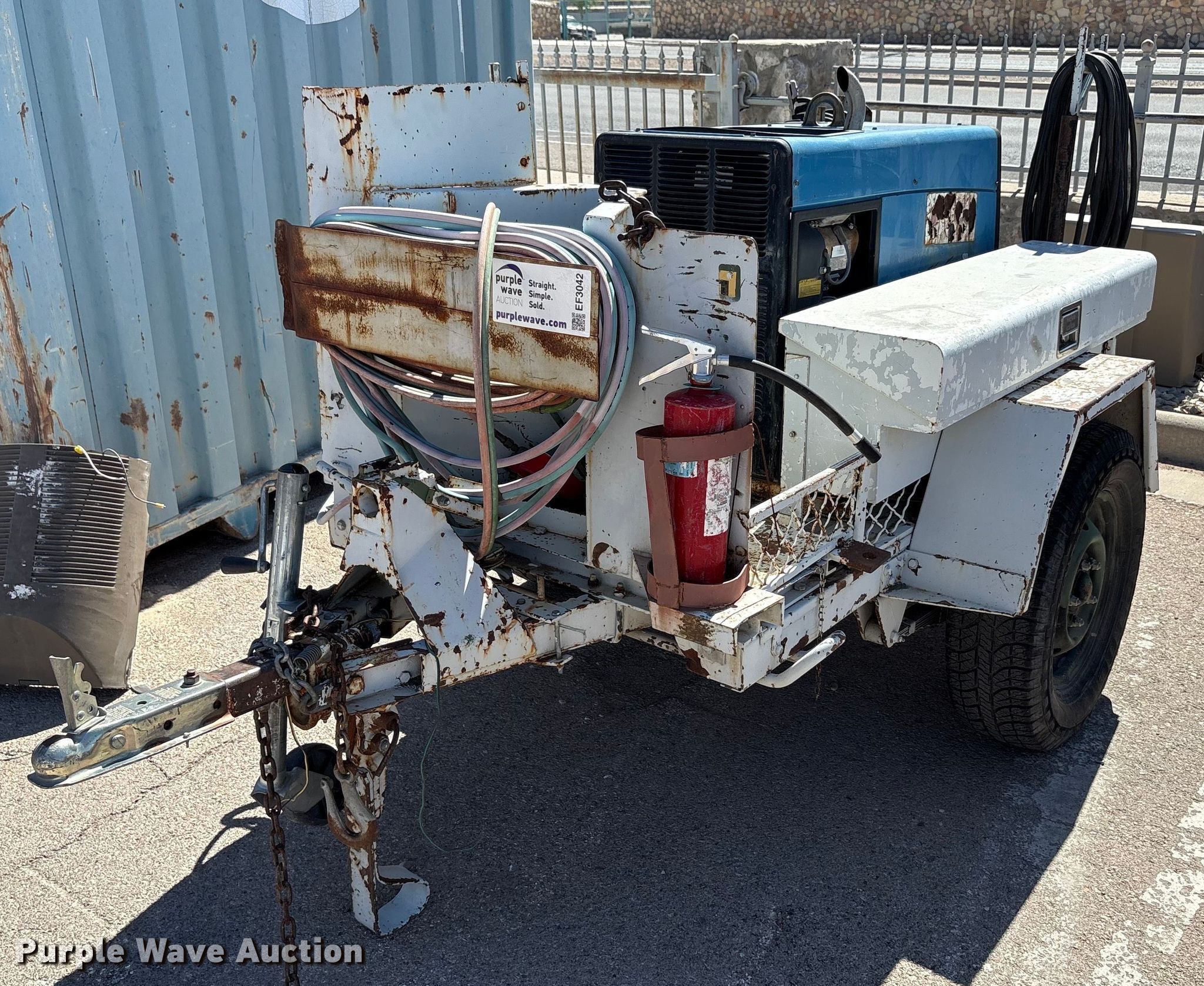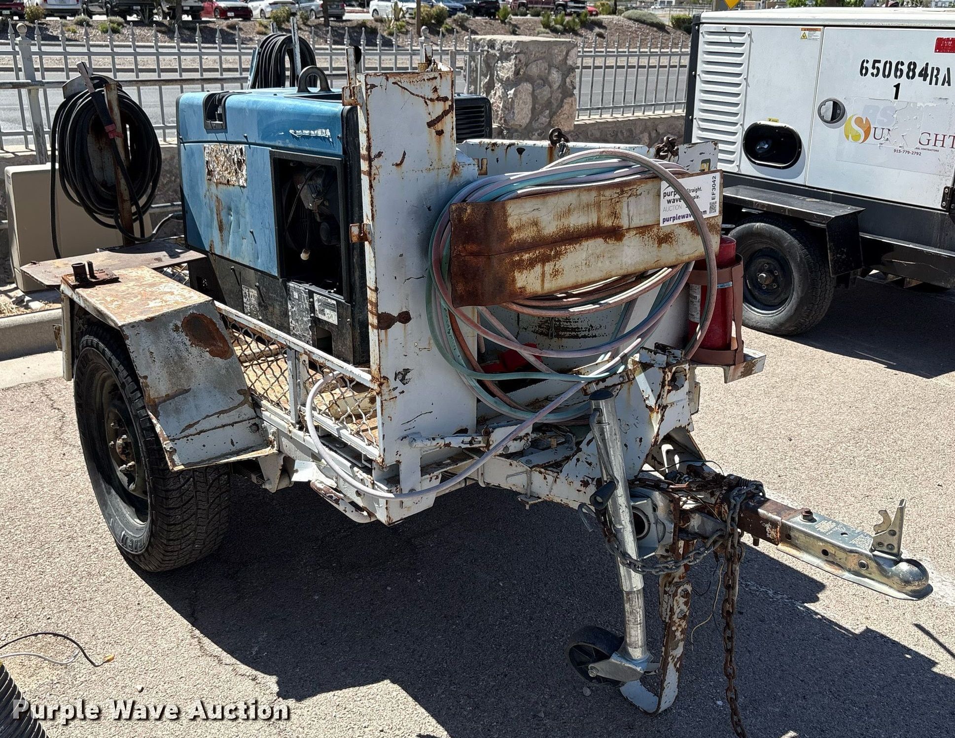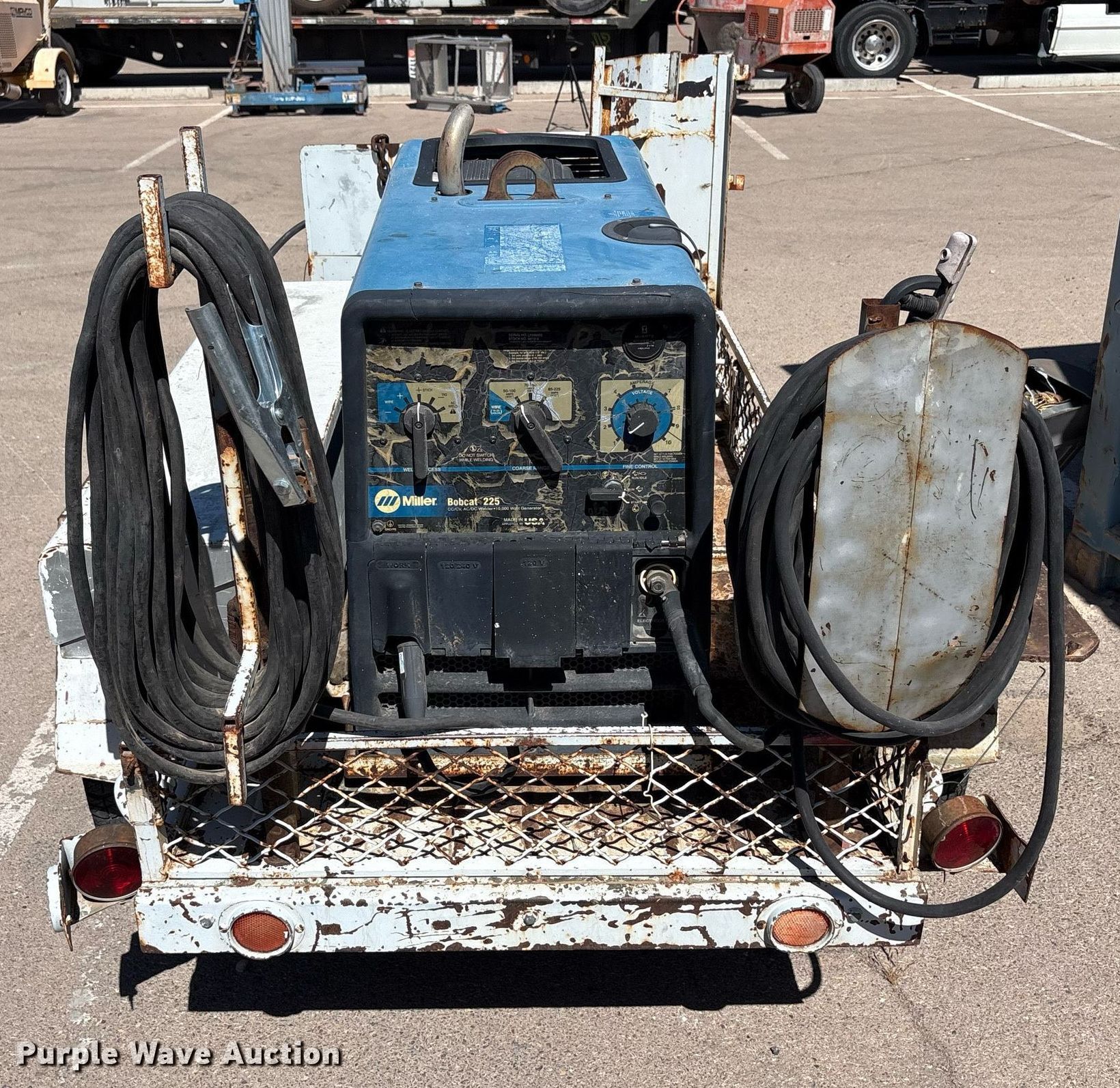 Miller Bobcat 225 welder/generator. Hours: 3,178 on meter, Serial: LF096003. Engine Robin EH65, Displacement: 653 cc, Cylinders: 2, Fuel type: Gas. Features Welder Capabilities: CC, CV, DC, AC, Wire, TIG, Stick, Leads, Trailer mounted, Generator Watts: 10,000, 240V outlets: 1, 120V outlets: 4. Trailer 9' L x 5' W, Ball hitch, Suspension: Spring, Axles: Single, Tire size: 235/70R16. All items must be removed by June 10, 2025. Transfer of ownership documentation will be a bill of sale. Sunlight Electric & Mechanical Co.. El Paso, TX 79915