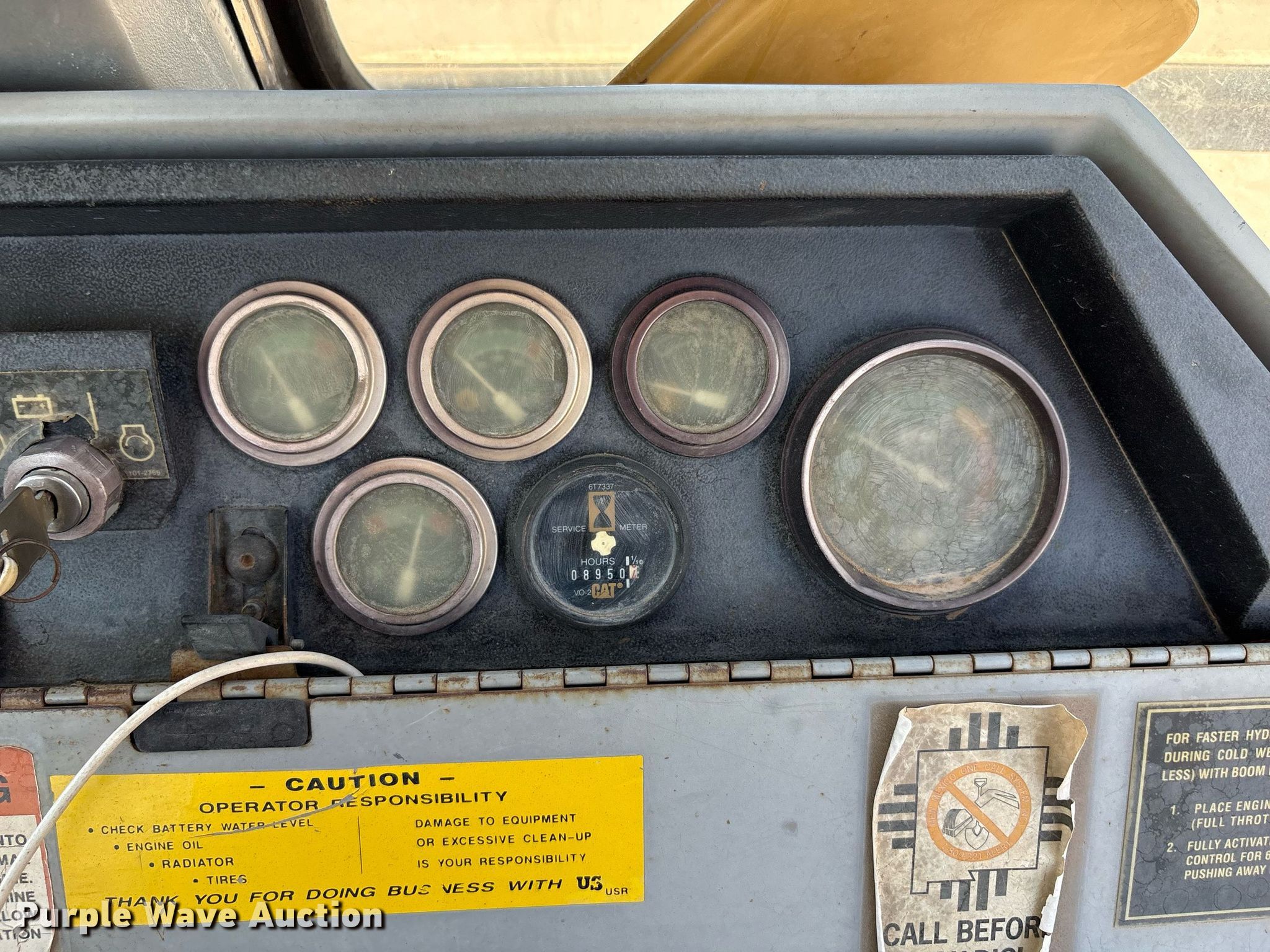 1996 Caterpillar 426B backhoe. Hours: 8,950 on meter, Serial: 6KL01843. Engine Caterpillar 3054, Cylinders: 4, Fuel type: Diesel. Transmission Shuttle shift, 4F - 4R. Chassis Four wheel drive, Differential lock. Operators station Enclosed cab, AC, Heat, Backhoe controls: Wobble stick / two stick. Features Loader Bucket Width: 90", Cutting edge: Bolt-on, Backhoe Bucket Width: 16", Teeth: 4.. Tires Front: 12.5/80-18, Rear: 19.5L-24. Notes Bucket controls issues, difficult to move, Glass cracked, Dead battery, Glass missing, Backhoe bucket tooth broken, Non-operational parking brake. Sunlight Electric & Mechanical Co.. El Paso, TX 79915