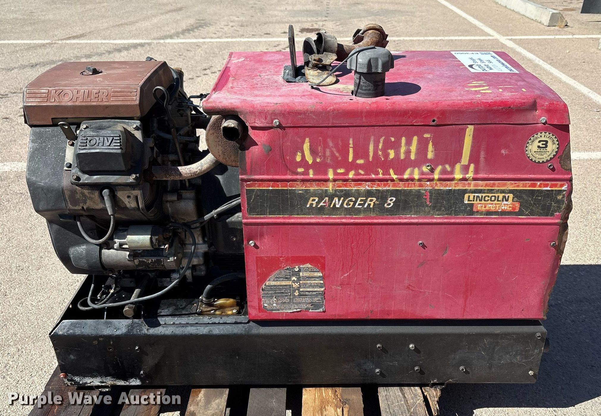 Lincoln Electric Ranger 8 welder/generator. Hours: 1,612 on meter. Engine Kohler, Cylinders: 2, Fuel type: Gas. Features Welder Capabilities: DC, AC, Wire, Stick, Fuel tank, Generator Watts: 8,000, 240V outlets: 1, 120V outlets: 4. Notes Dead battery, Possible engine issues, turns over but will not start , Unknown operating condition. All items must be removed by June 10, 2025. Sunlight Electric & Mechanical Co.. El Paso, TX 79915
