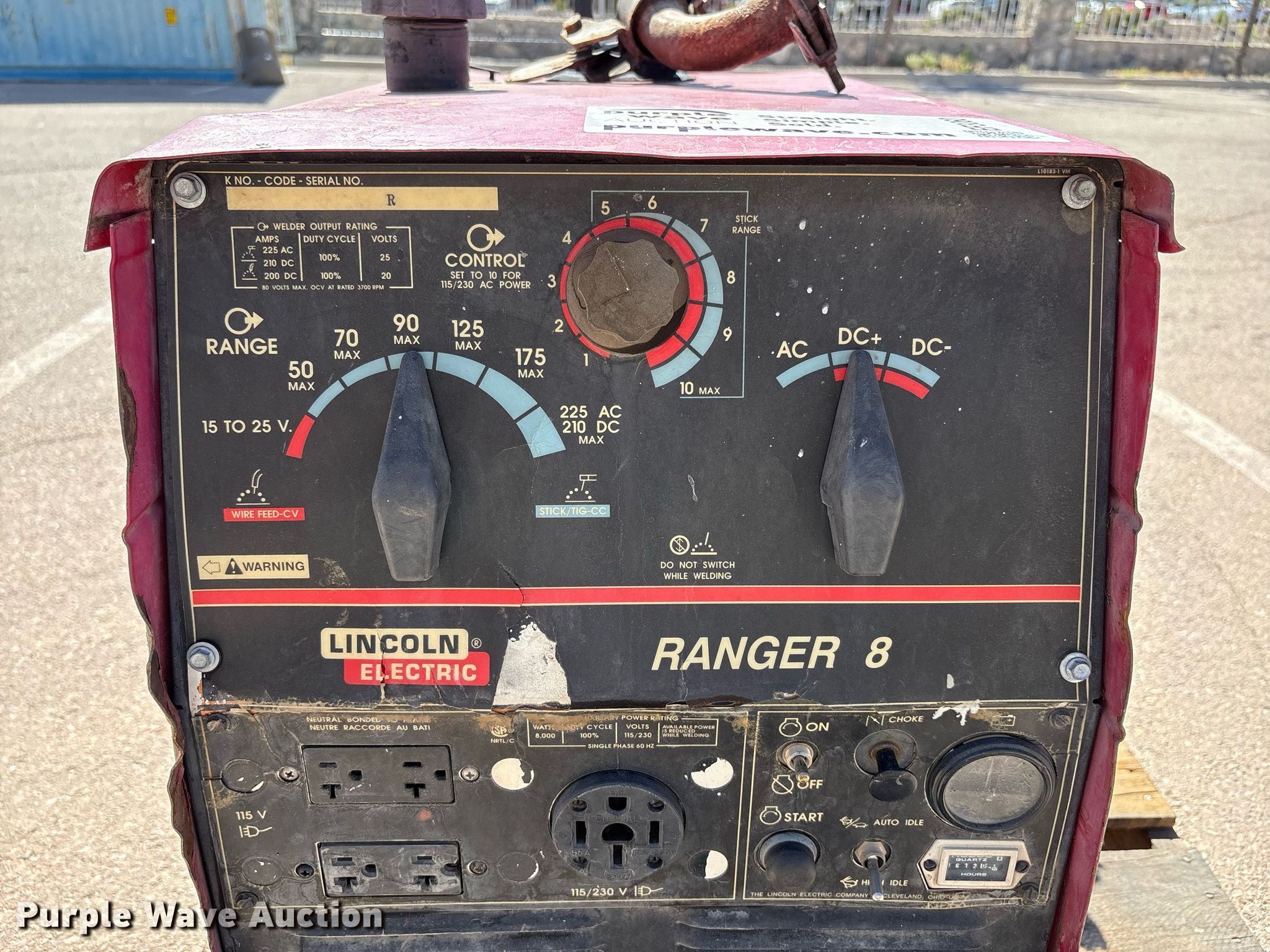Purple Wave is selling a used Welder (Manual) in Texas. This item is a Lincoln Electric Ranger 8 welder/generator with the following: Hours: 1,612 on meter