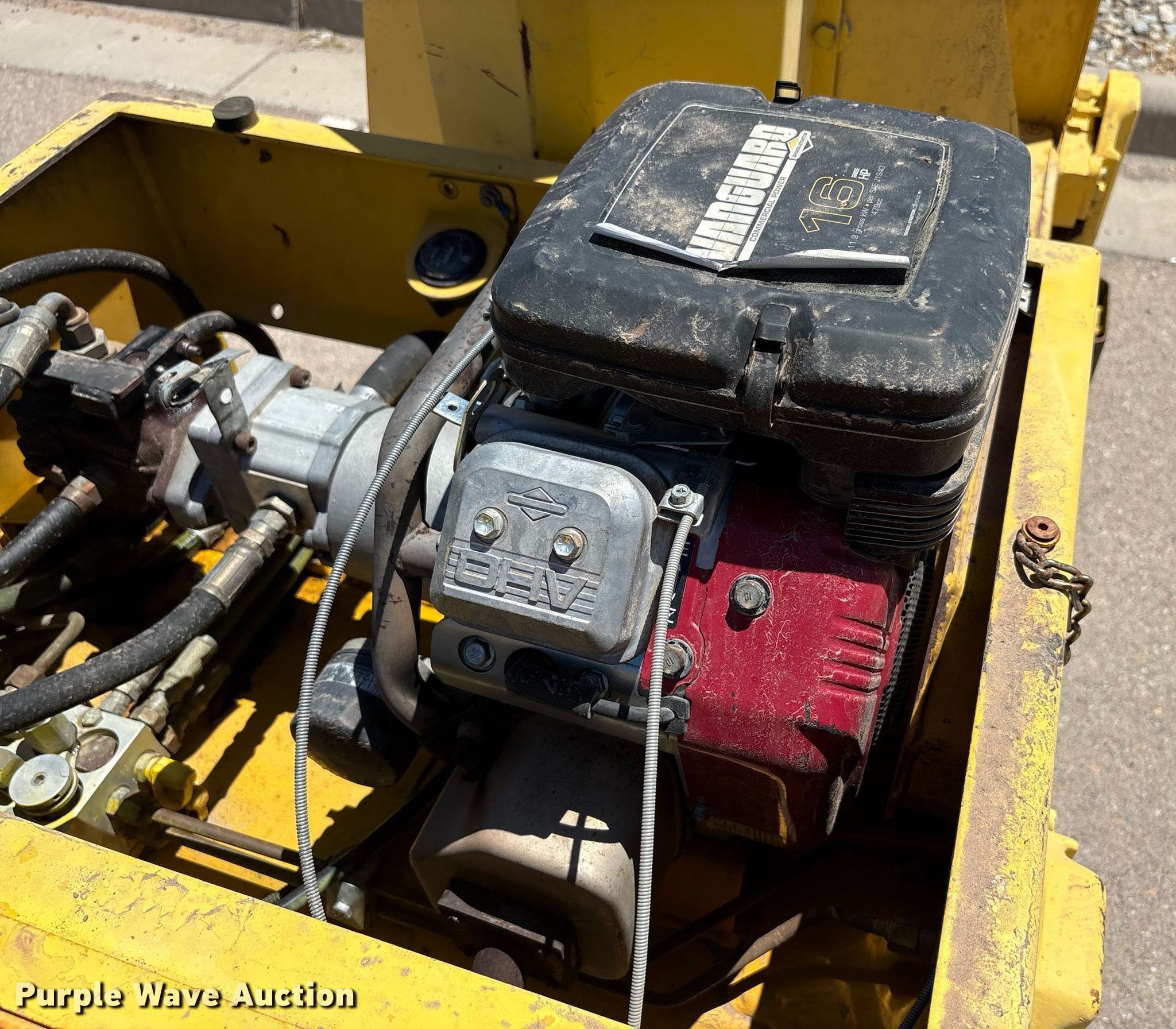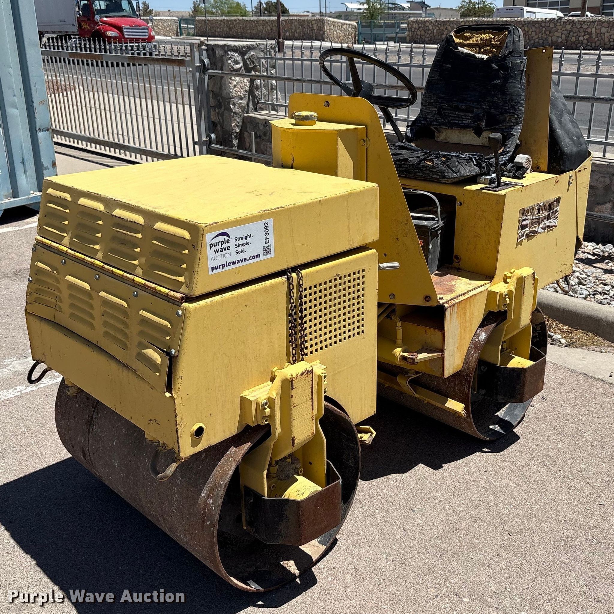 1996 Wacker RD880V double drum vibratory roller. Hours: 1,340 on meter, Serial: 673603425. Engine Briggs & Stratton Vanguard, Displacement: 479 cc, Cylinders: 2, Fuel type: Gas, HP: 16, kW: 11.9. Transmission Hydrostatic. Features Drum: Smooth, Vibratory system: Double, Front drum Width: 35", Diameter: 22", Rear drum Width: 35", Diameter: 22", Drum scrapers: Front, Rear. Notes Dead battery, Hydraulic leak, Front drum scraper broken. All items must be removed by June 10, 2025. Sunlight Electric & Mechanical Co.. El Paso, TX 79915