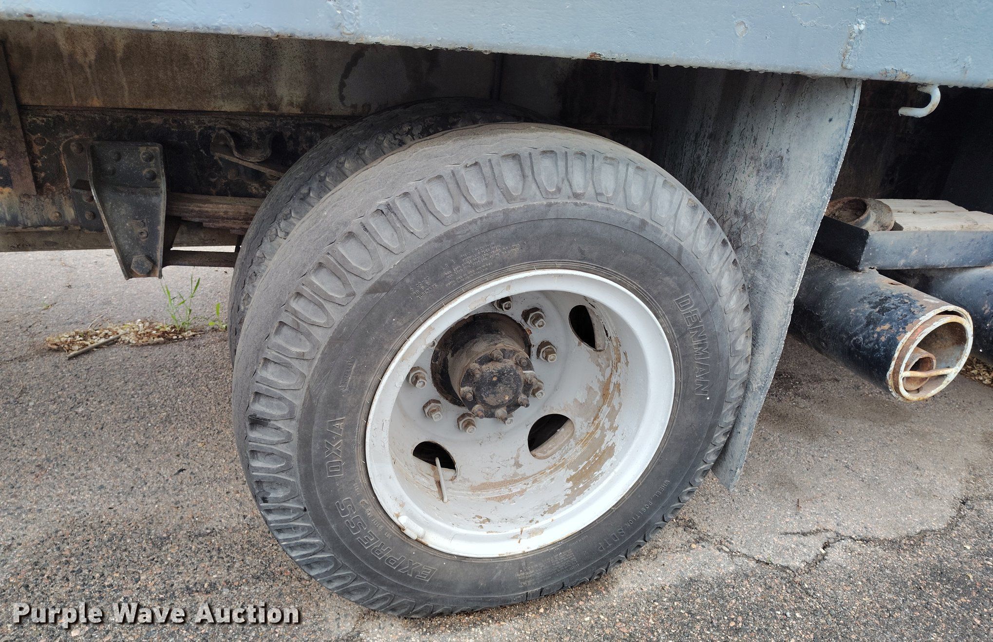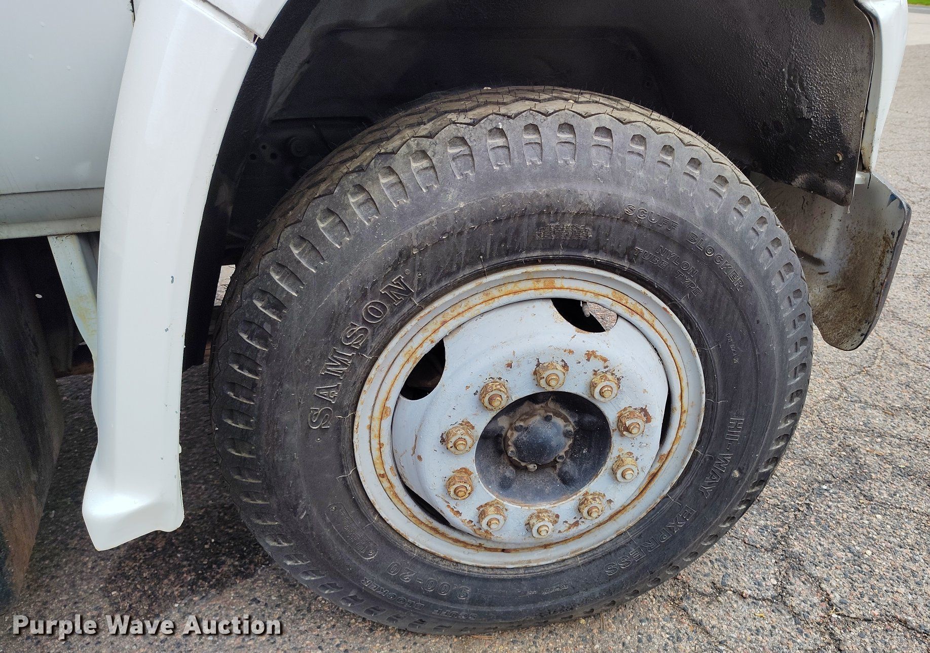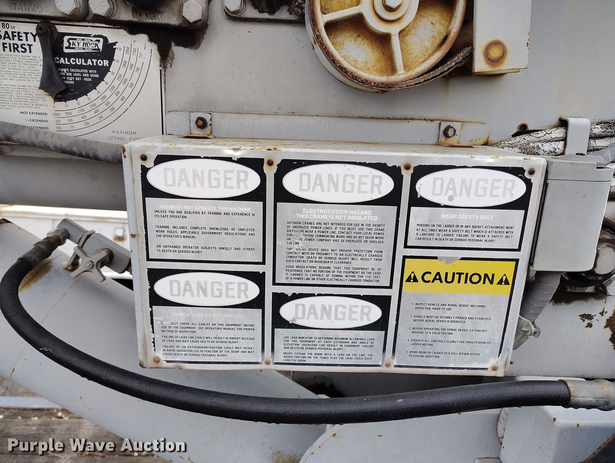 1983 GMC C6000 crane truck. Miles: 85,415 on odometer, Hours: 7,524 on meter, VIN: 1GDG7D1B5DV500063. Engine GM 366, Displacement: 6.0L, Cylinders: 8, Fuel type: Gas. Transmission Manual, Speed: 5, plus 2. Chassis Axles: Single, Suspension: Spring, Brakes: Hydraulic, GVWR: 23,160 lbs FAWR: 7,000 lbs, RAWR: 16,160 lbs. Interior Heat. Features Flatbed 18' 4" L x 95" W, Crane Skyhook 80SP Serial: 80 6108 94, Boom Telescopic, Maximum boom length: 80' Sections: 5, Maximum lift capacity: 4,000 lbs, Boom controls Ground, Crane ball & hook, Manuals, Lift chart. Tires Size: 9.00-20. Notes Dead battery, Unknown operating condition of engine Electrical wire issues, damaged, Rodent damage, Unknown operating condition. Colorado title. Title distribution may be delayed up to 14 days from verification of funds. German Sign. Commerce City, CO 80022