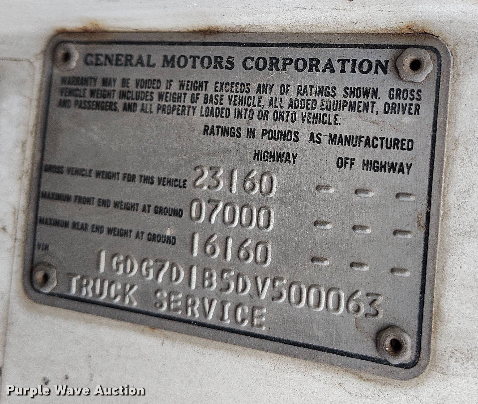 Purple Wave is selling a used Crane Truck in Colorado. This item is a 1983 GMC C6000 crane truck with the following: Miles: 85,415 on odometer, Hours: 7,524 on meter, VIN: 1GDG7D1B5DV500063