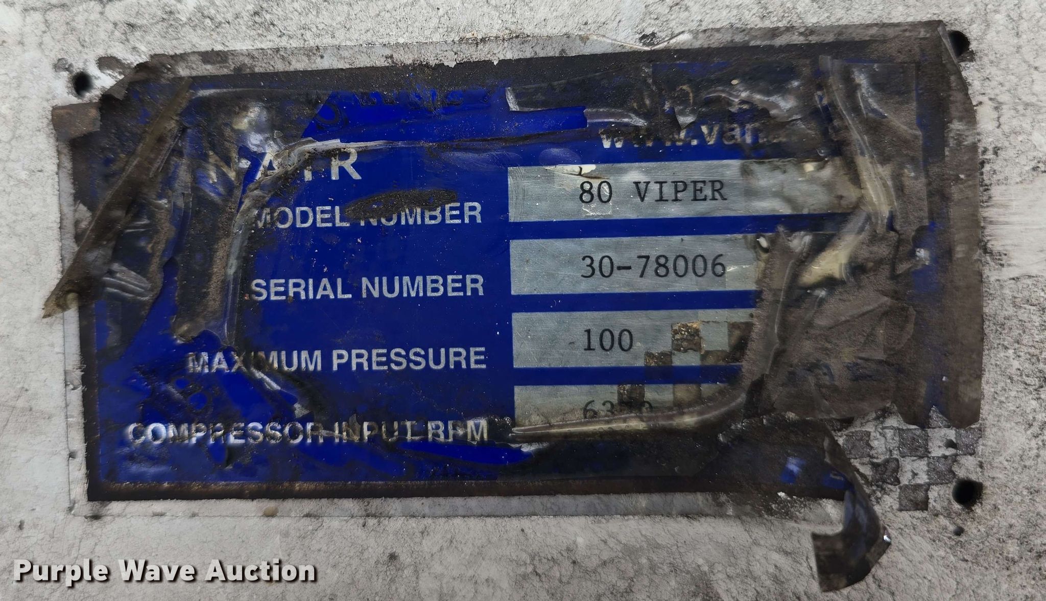 Purple Wave is selling a used Air Compressor in Nebraska. This item is a Vanair 80 Viper air compressor with the following: Hours: 1,729 on meter, Serial: 30-78006