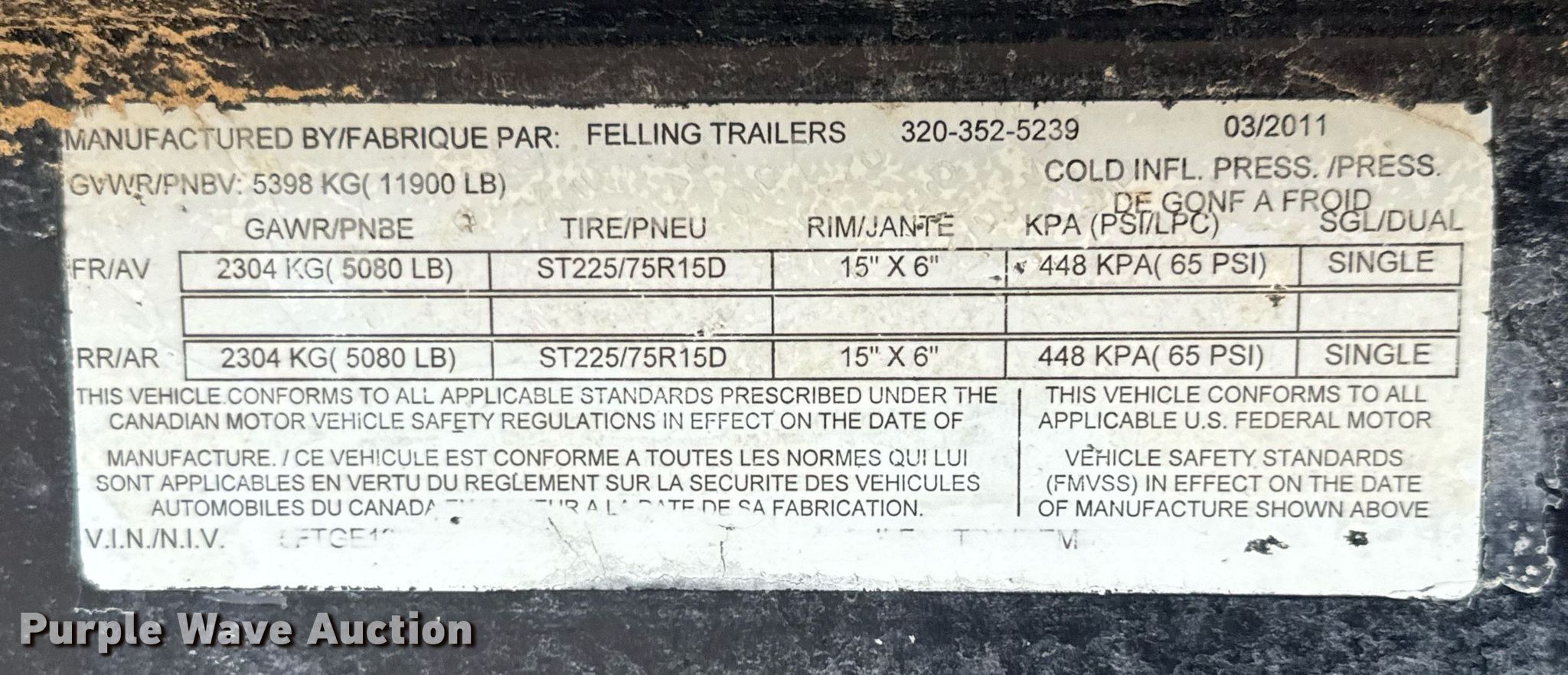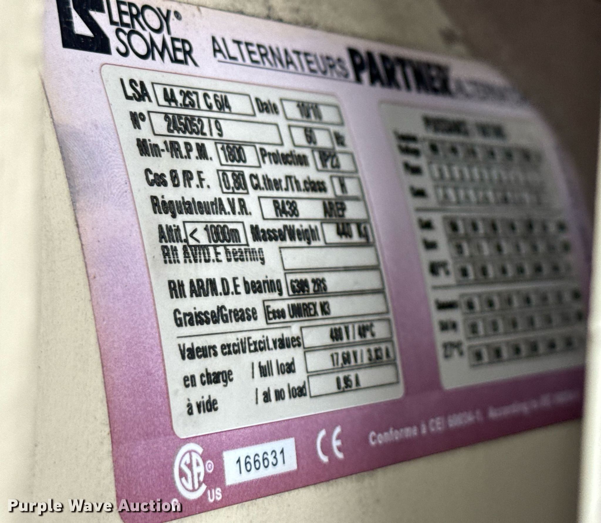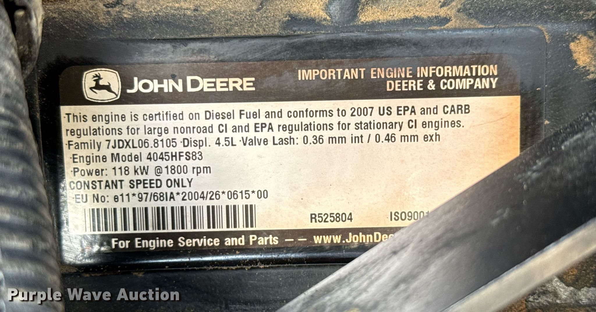 2010 Doosan generator. Hours: 585 on meter Actual hours unknown. Engine John Deere 4045, Displacement: 4.5L, Cylinders: 4, Fuel type: Diesel, kW: 118. Features Generator kW: 100, Electric start, Fuel tank. Trailer 2011 Felling, 17' L x 79" W, Ball hitch size: 2 5/16", Suspension: Spring, Brakes: Electric, Axles: Tandem, Tire size: 225/75R15, GVWR: 11,900 lbs, GAWR: 5,080 lbs. Notes Voltage issues, Hour meter replaced, Non-operational unit. Transfer of ownership documentation will be a bill of sale. Central Power Systems and Services. San Antonio, TX 78219
