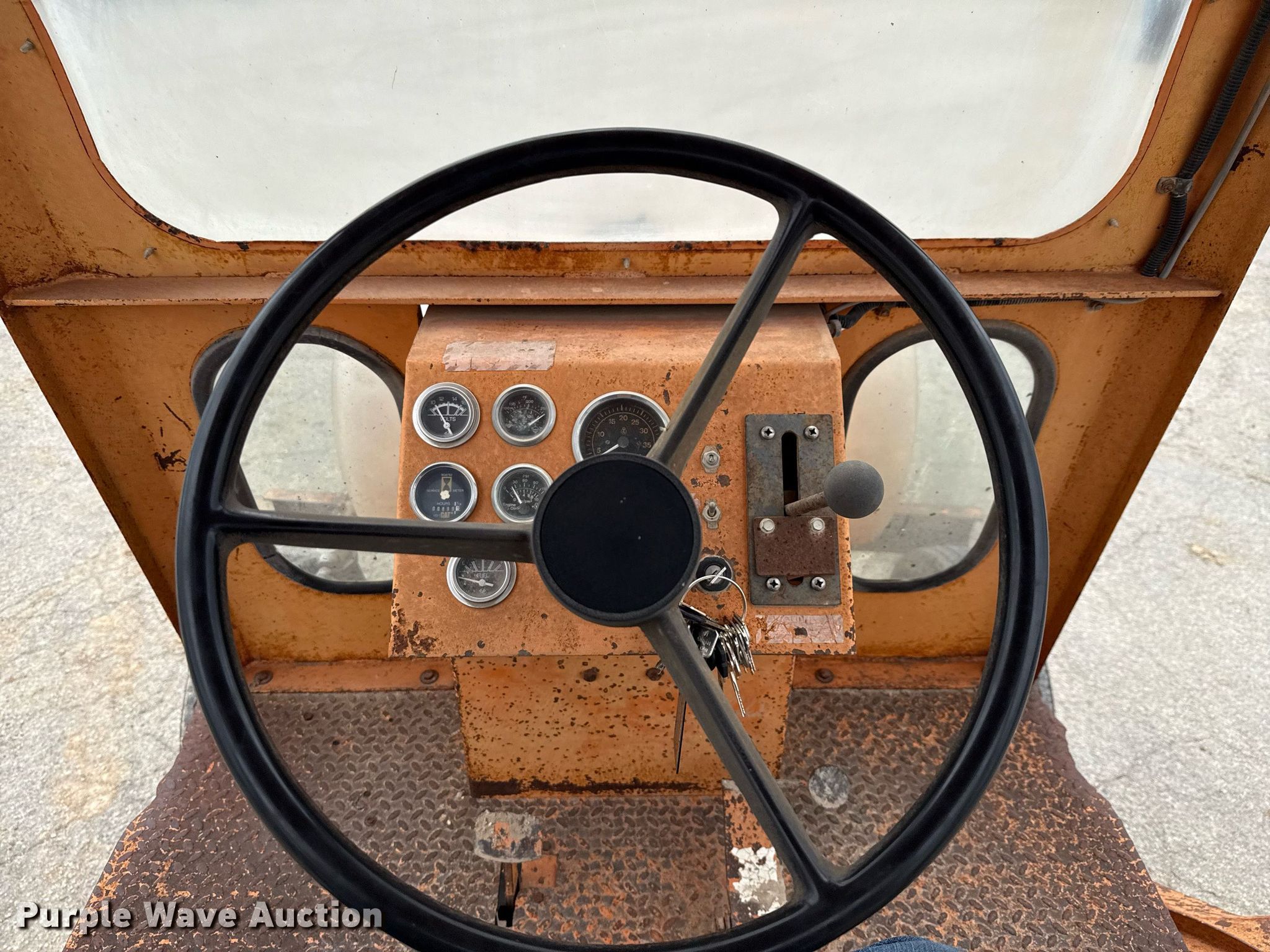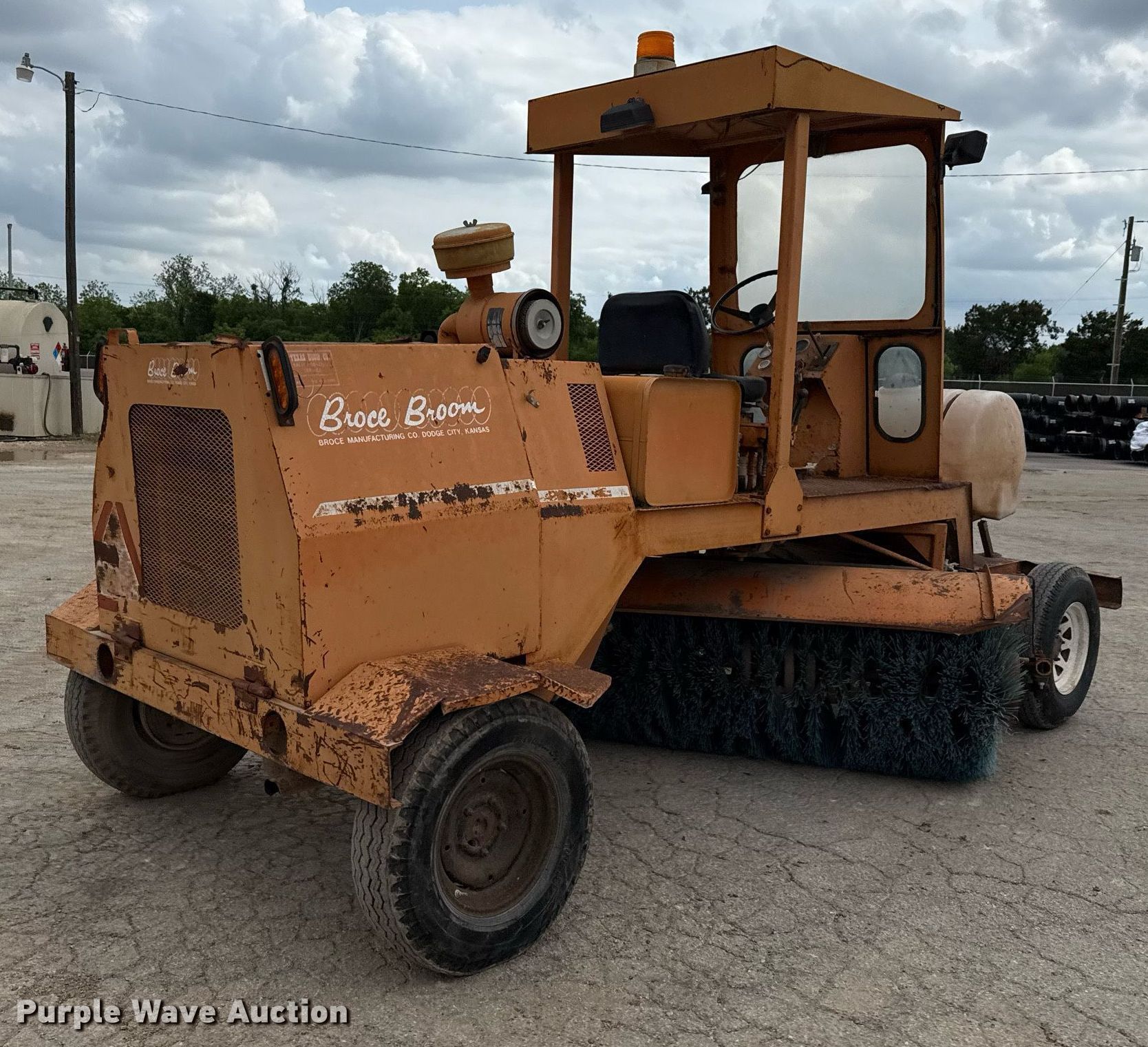 1988 Broce RJ300 broom. Hours: 899 on meter, Serial: 86339. Engine John Deere 4239, Serial: T024239D185269, Cylinders: 4, Fuel type: Diesel. Transmission Hydrostatic. Chassis Brakes: Hydraulic. Operators station OROPS. Features Broom Width: 96", Water spray system Capacity: 65 gallons. Tires Front: 205/90D15, Rear: 7.00-15. Notes Water pump issues, disconnected, Non-operational water spray system. Haegelin Construction. Austin, TX 78727