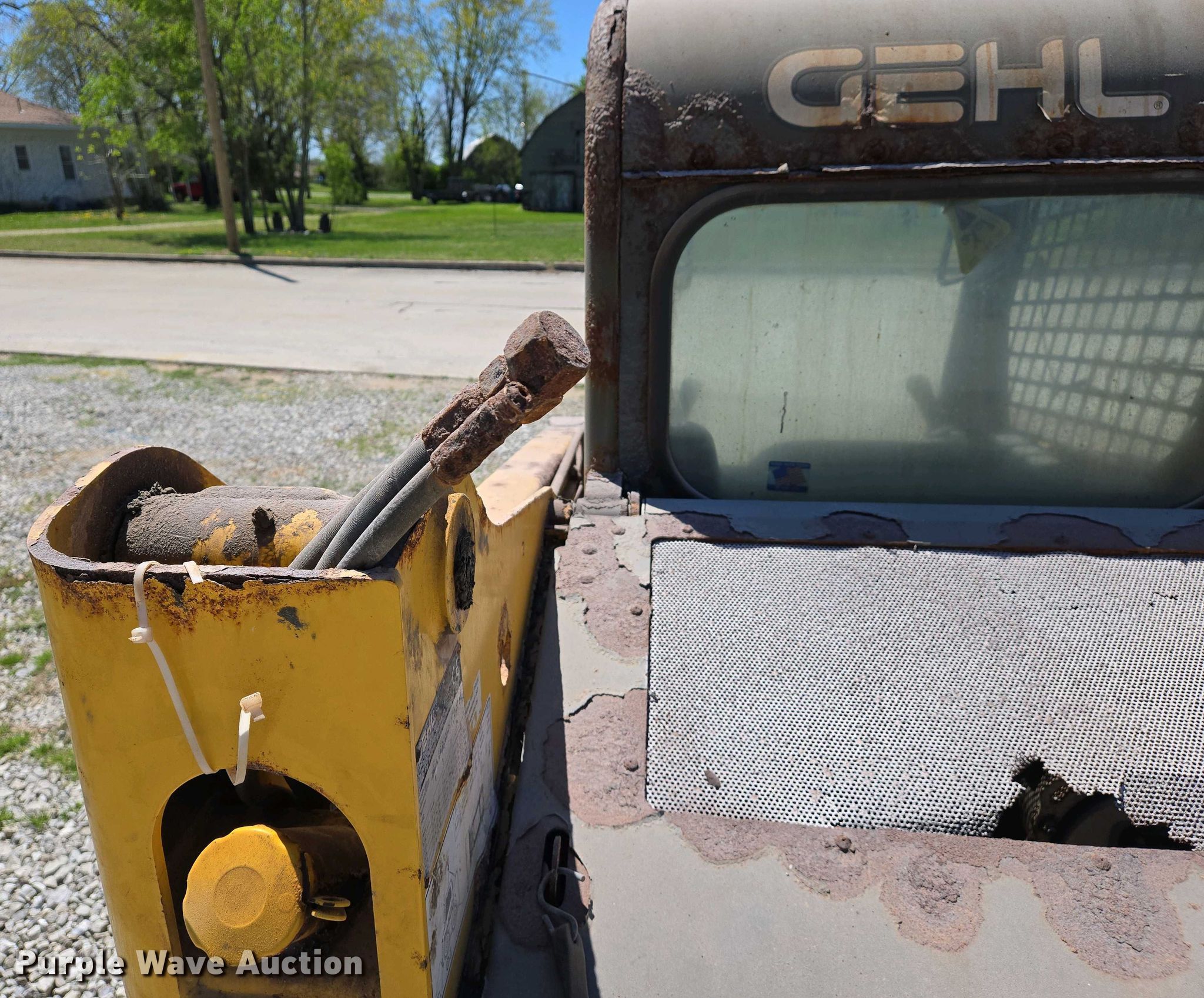 2014 Gehl R220 skid steer loader. Hours: 1,504 on meter, Serial: GHL0R220B00173471. Engine Yanmar 4TNV98CT, Cylinders: 4, Fuel type: Diesel. Transmission Hydrostatic, Two speed travel. Operators station OROPS, Bucket control: Hand. Features Auxiliary hydraulics, Quick coupler: Manual, Counter weights, Bucket Width: 74", Cutting edge: Bolt-on. Tires Size: 12-16.5. Notes Non-operational auxiliary hydraulics. MFA Inc. Mansfield, MO 65704