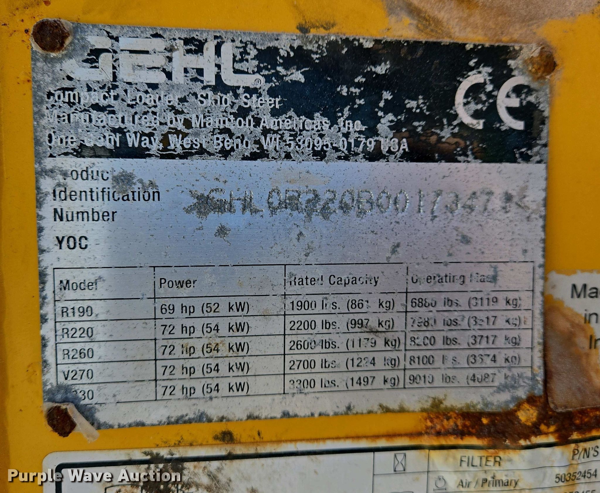 Purple Wave is selling a used Skid Steer Loader in Missouri. This item is a 2014 Gehl R220 skid steer loader with the following: Hours: 1,504 on meter, Serial: GHL0R220B00173471