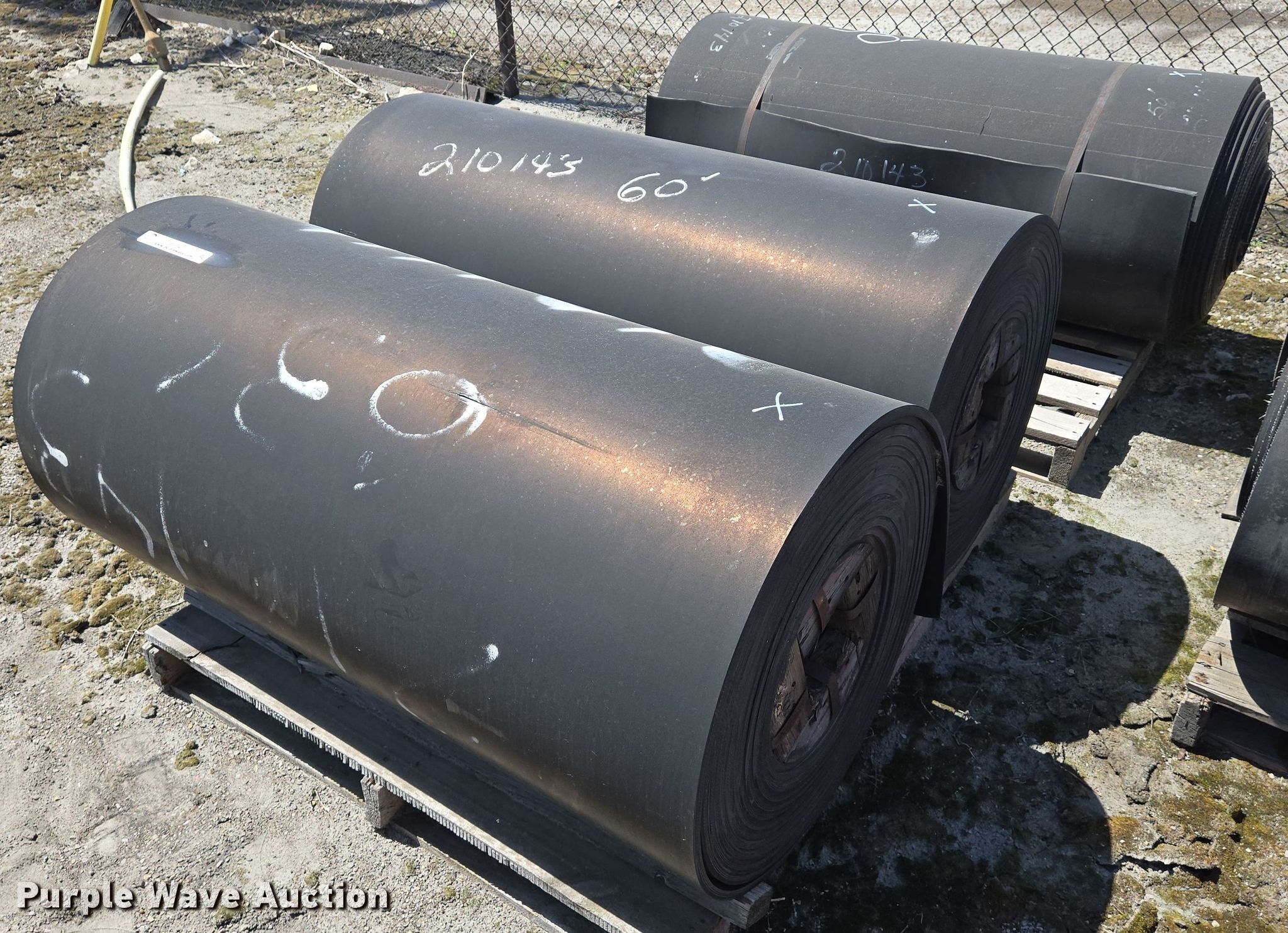 Purple Wave is selling a used Conveyor in Missouri. This item is a (3) conveyor belt with the following: Approximately 150', Width: 48", Three ply, 450 PIW, MSHA Fire resistance covers 3/16" x 1/16"