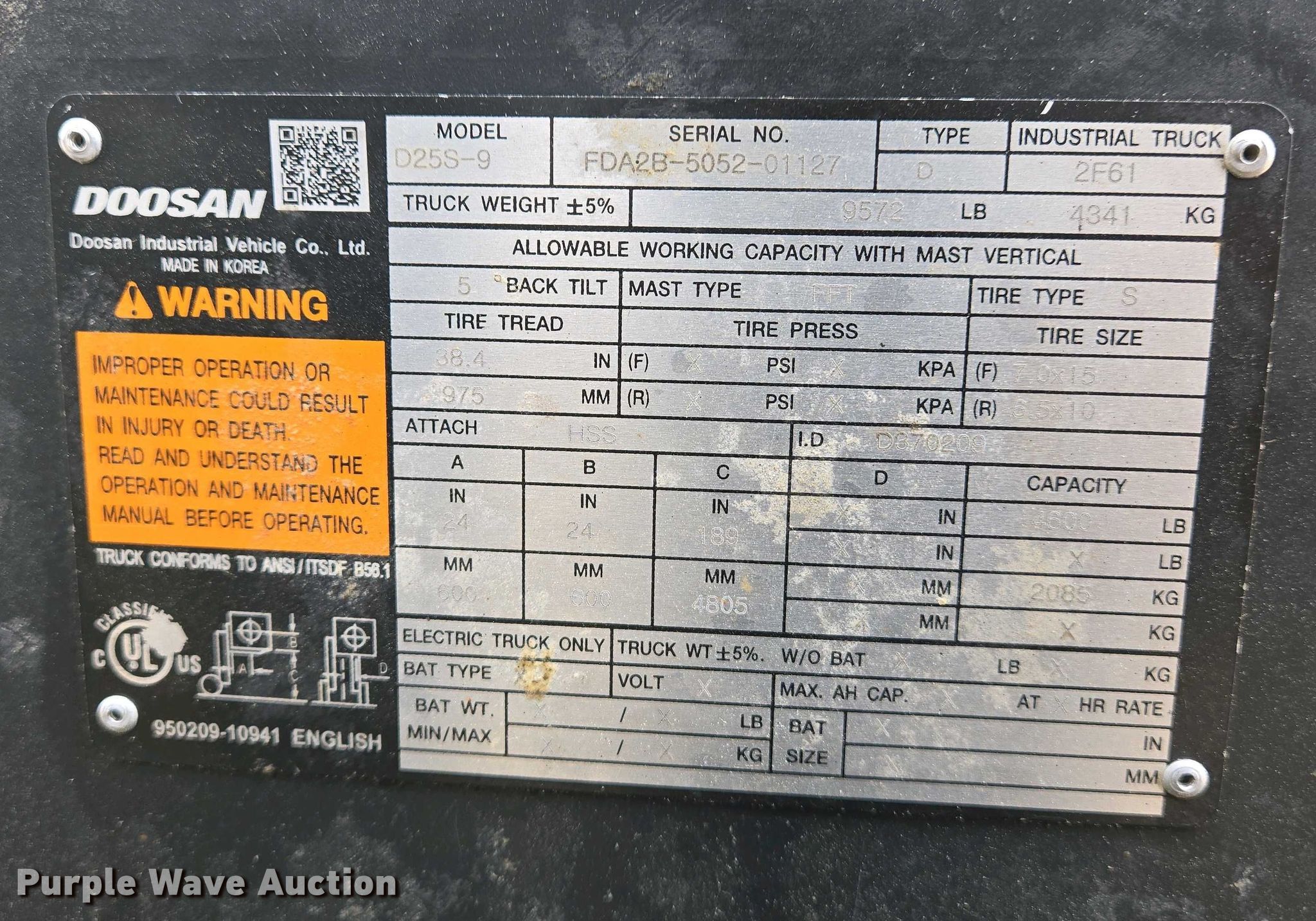 Doosan D25S-9 forklift | SOLD! May 22 Construction Equipment Auction