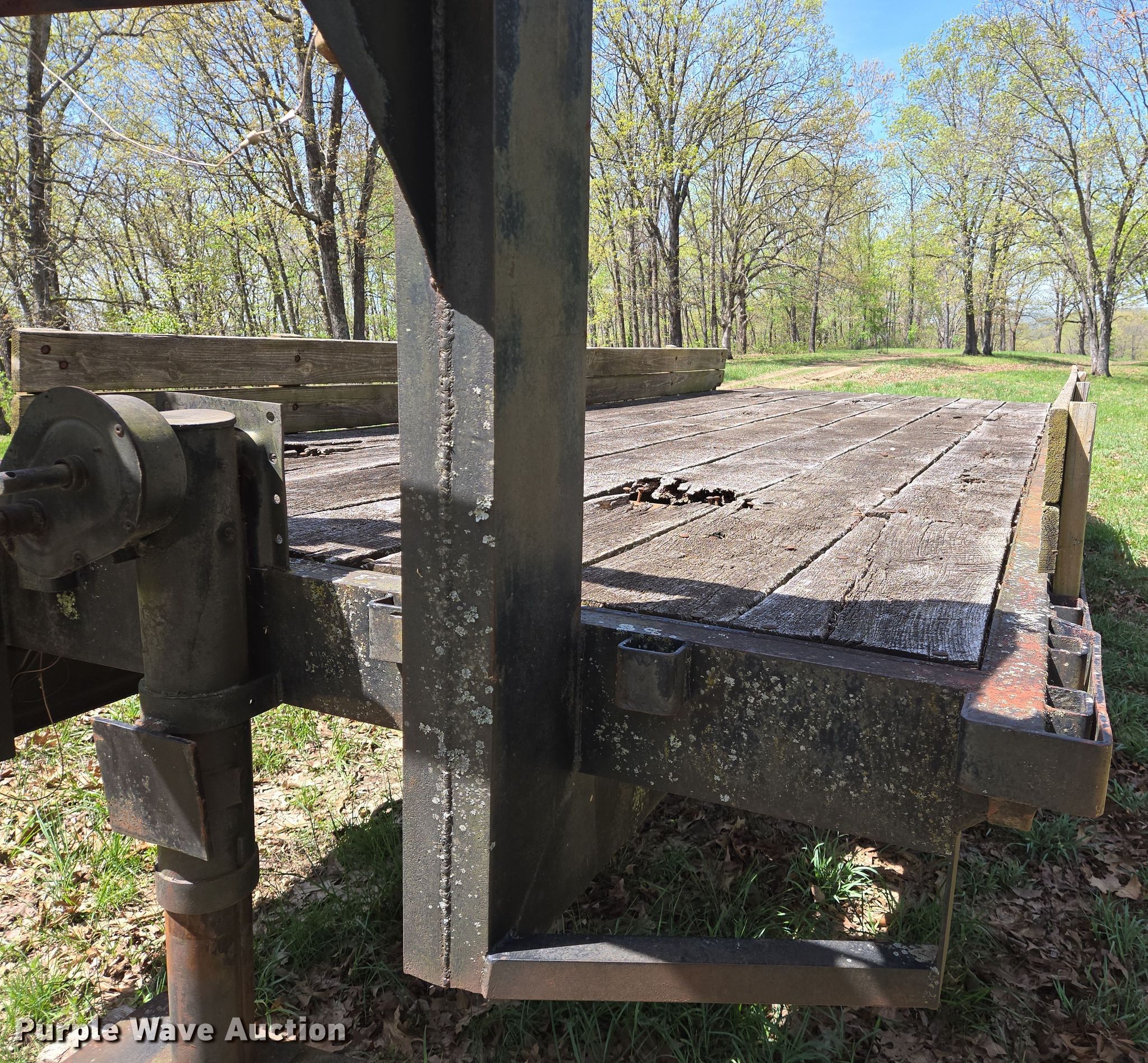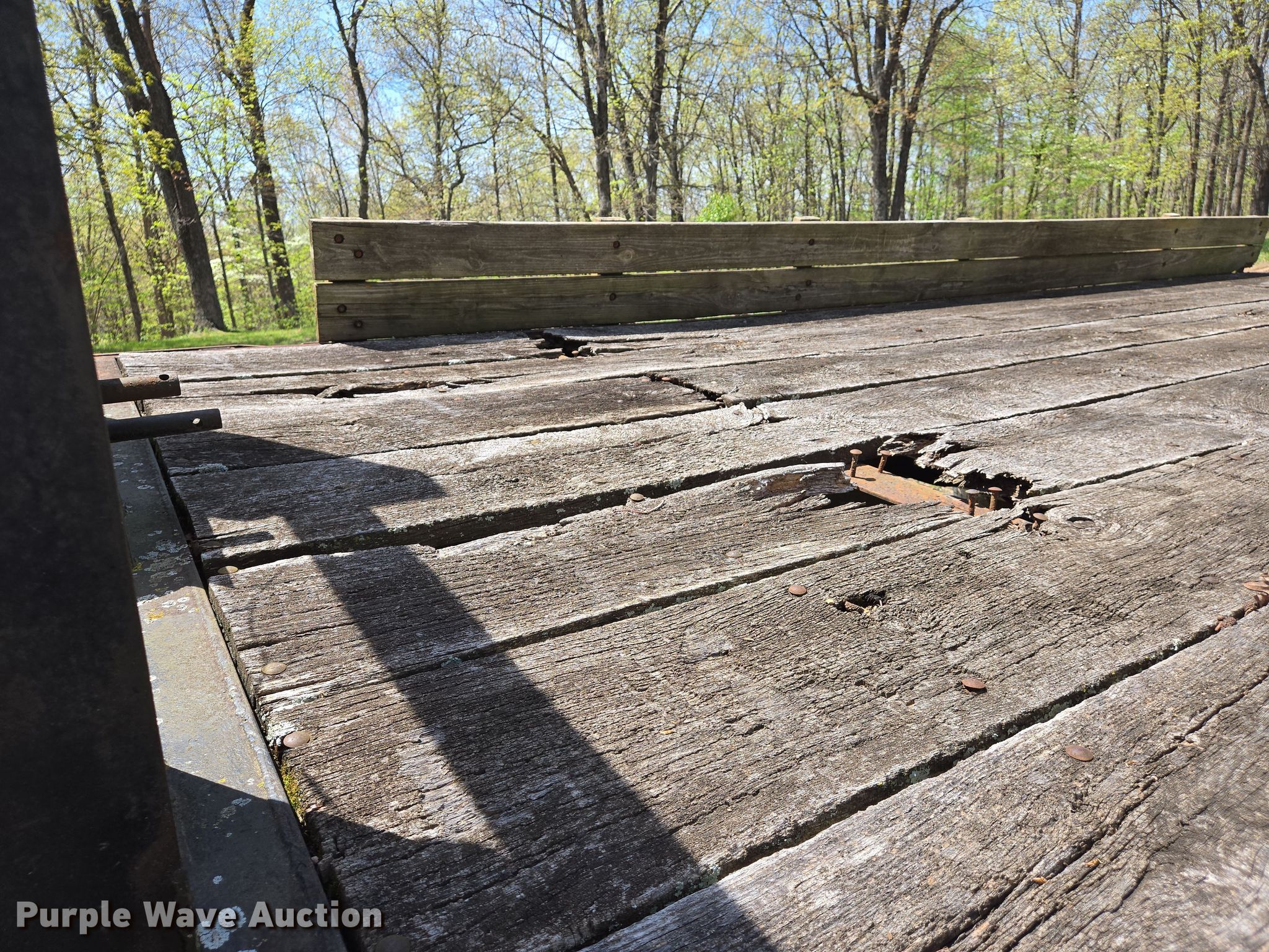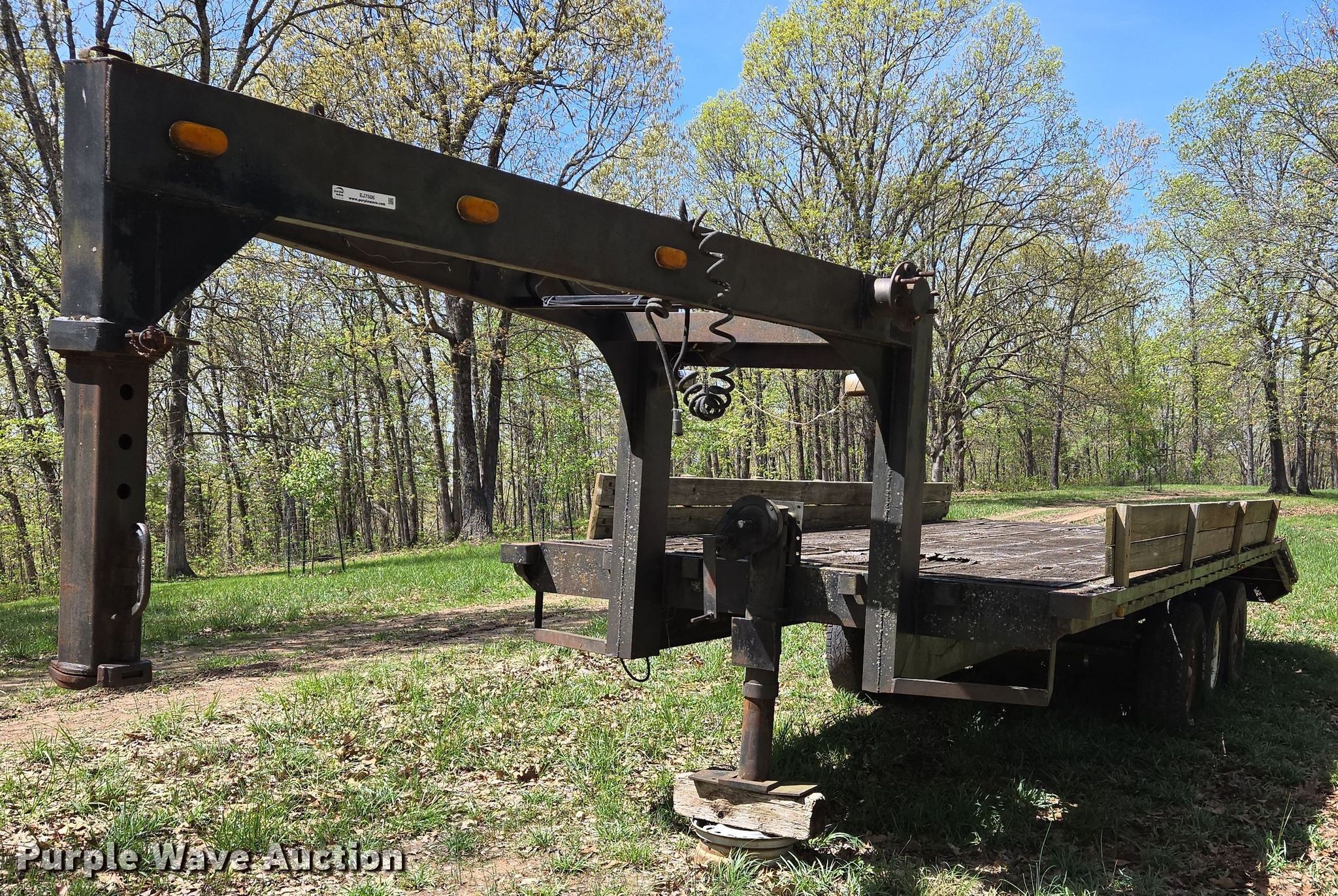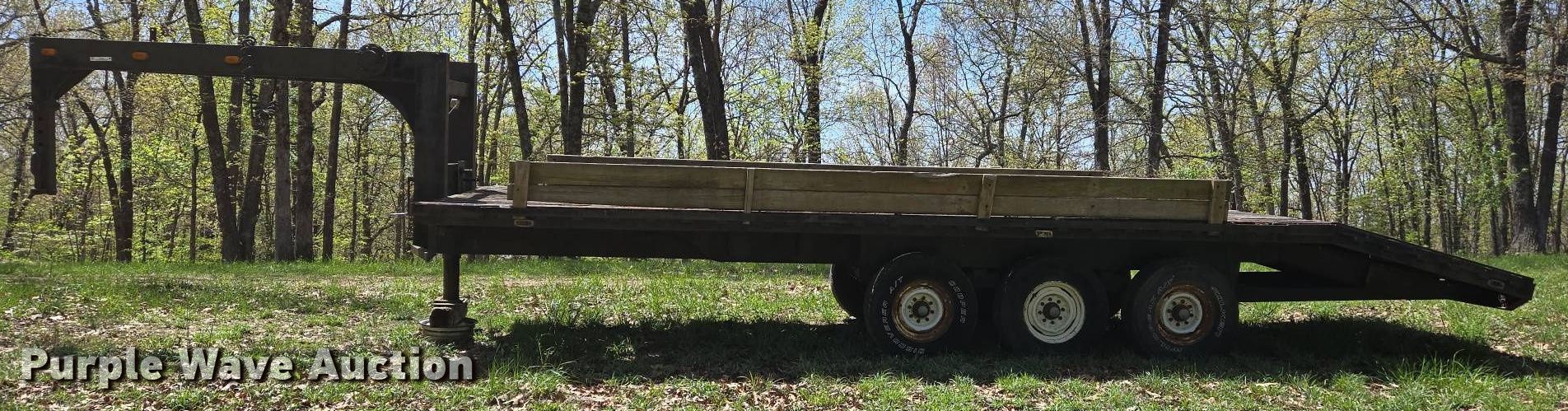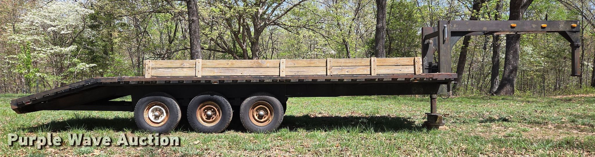 1992 Shop built equipment trailer. VIN: DRX000160584MO. Dimensions Overall: 34' 6" L x 7' 10" W, Deck: 20' L x 7' 10" W, Deck height: 38", Tail length: 5', Ramps: Manual Length: 5' 10". Features Deck type: Wood. Chassis Hitch: Gooseneck, Landing gear: Single, Suspension: Spring, Brakes: Electric, Axles: Triple, Ramps. Tires Steel wheels, Size: 265/75R16. Notes Deck boards damaged. Missouri title. Title distribution may be delayed up to 14 days from verification of funds. Walker Products, Inc.. Sullivan, MO 63080