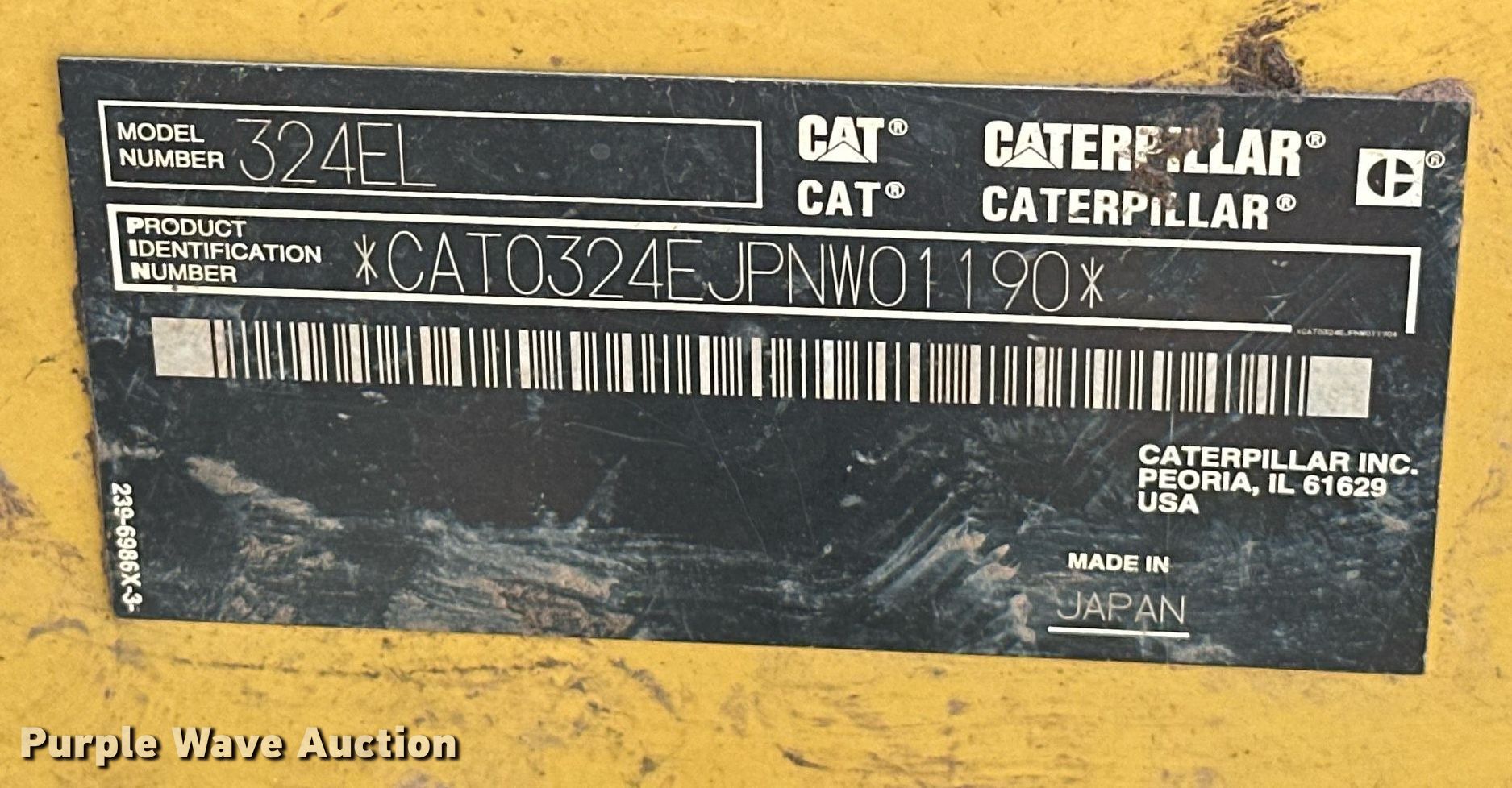 Purple Wave is selling a used Hydraulic Excavator in Oklahoma. This item is a 2013 Caterpillar 324EL excavator with the following: Hours: 9,411 on meter, Miles or hours may vary, unit still in use, Serial: CAT0324EJPNW01190
